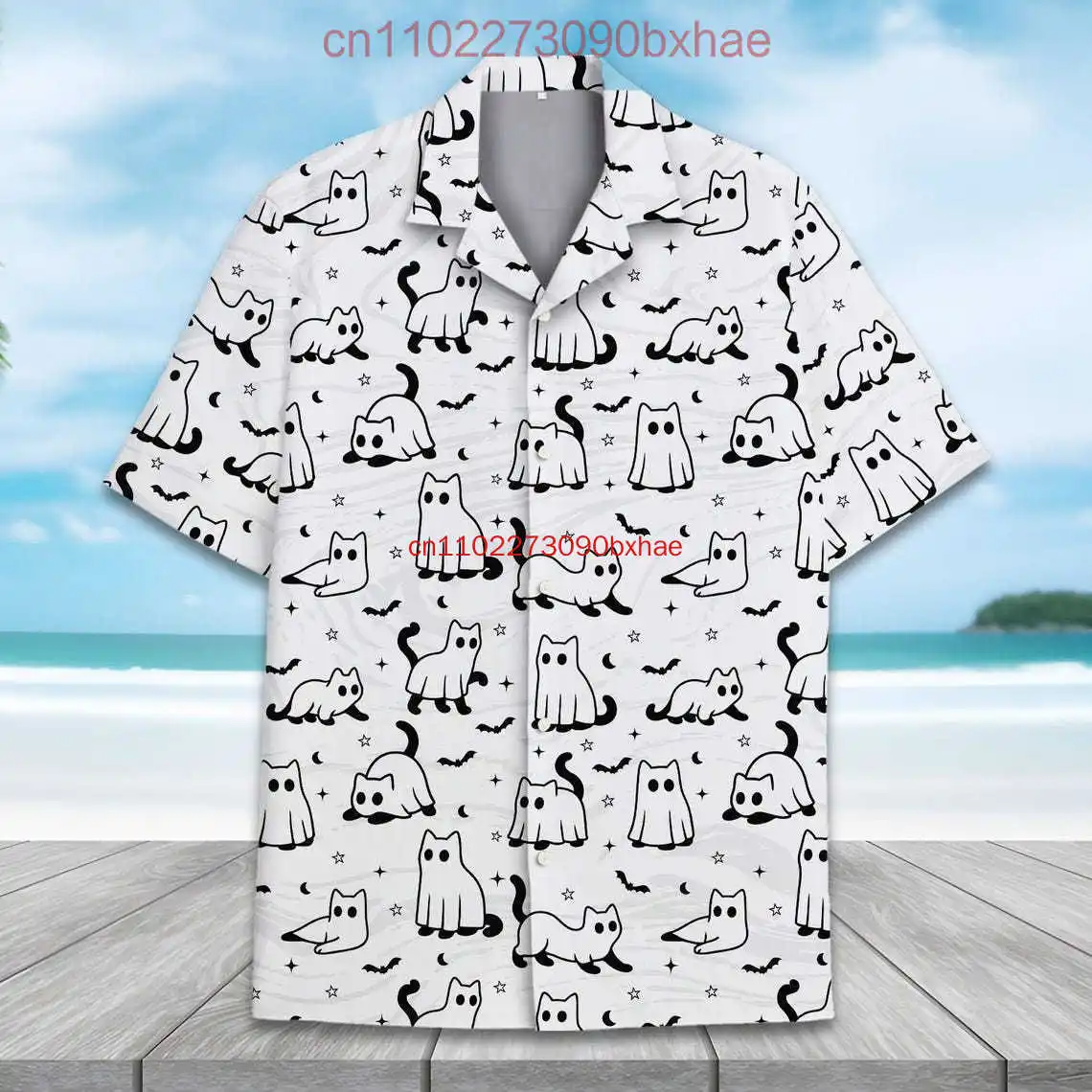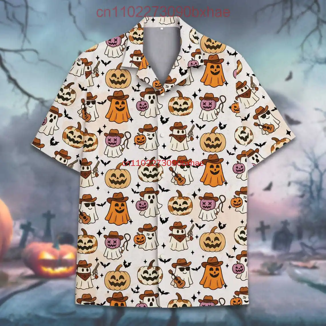 Cute Cowboy Ghost Hawaiian Shirt for Men Women Youth Funny Pumpkin Halloween Shirt Kawaii Spooky Spirit Button Down Party Shirt