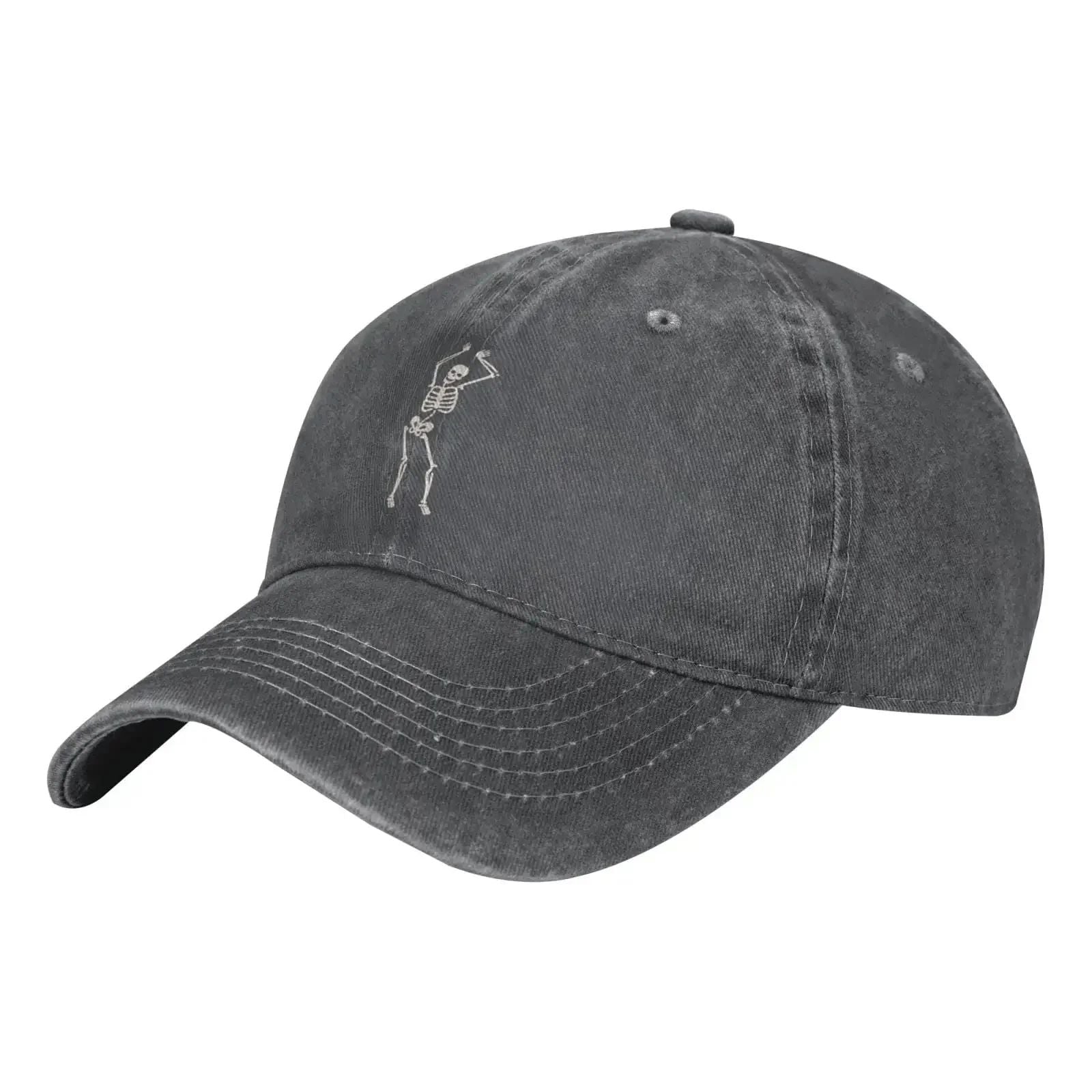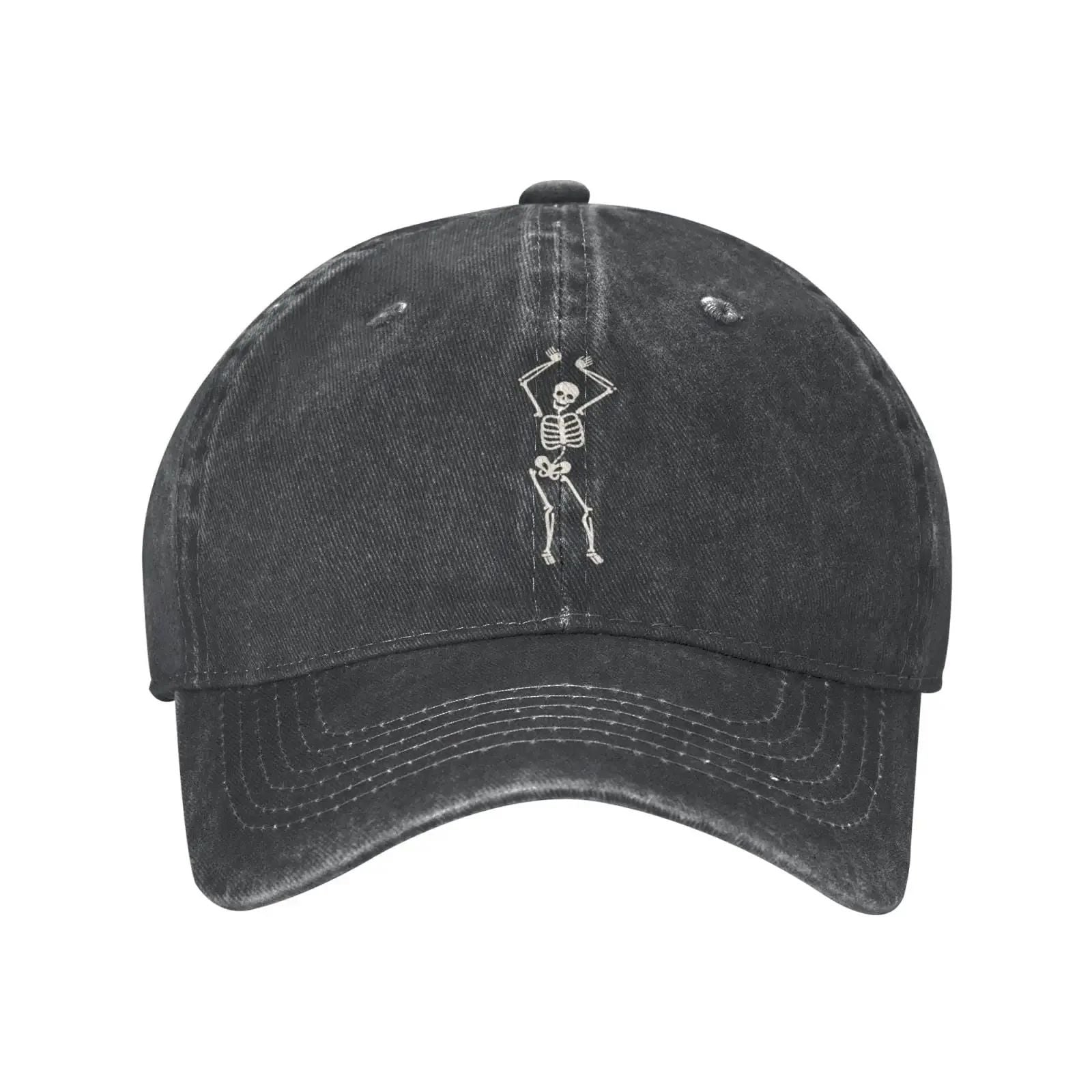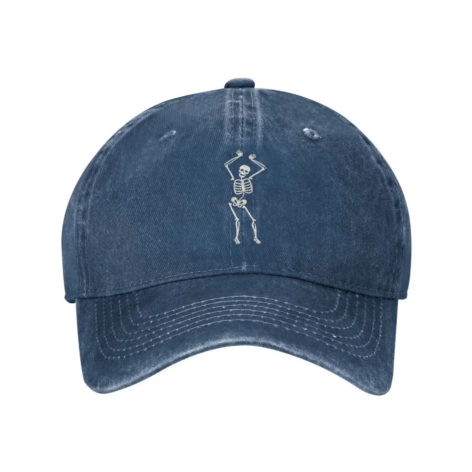 Dancing Skeleton Blue Vintage Adjustable Washed Cotton Trucker Hat Black Fitted Baseball Ball Cap for Men Women Headwear