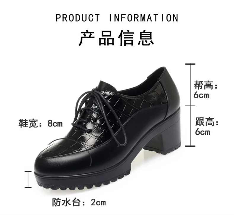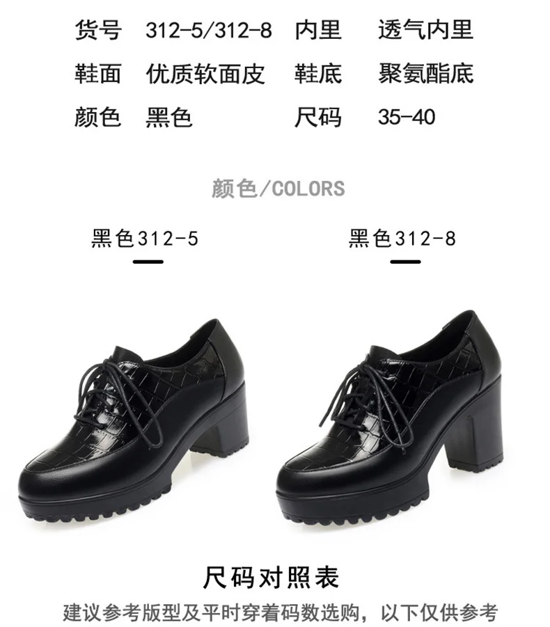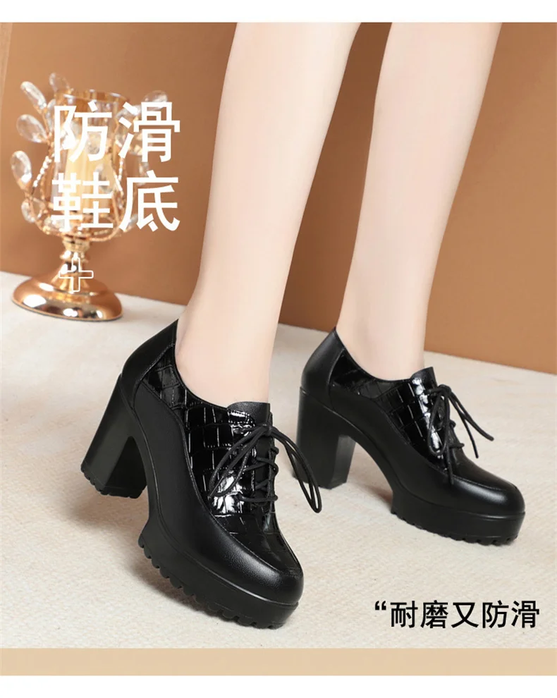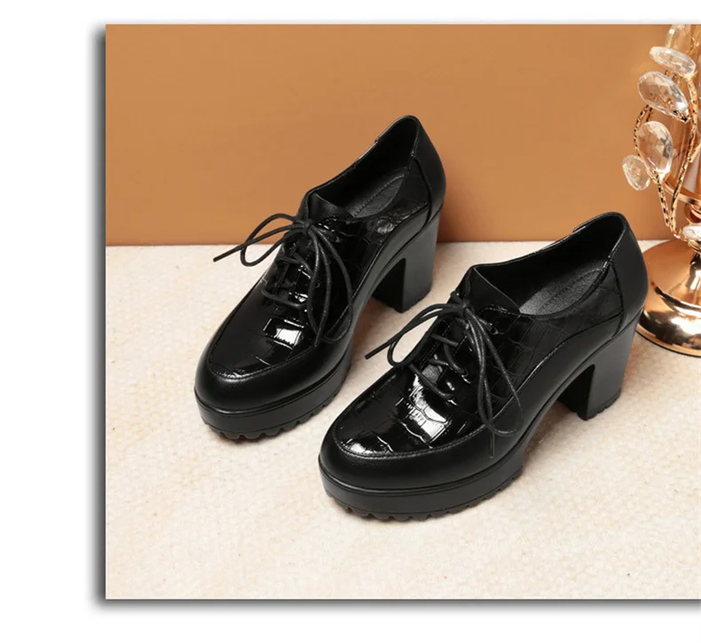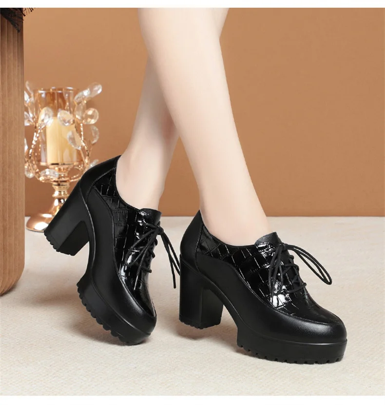 Deep Mouth Soft Leather Shoes Women Oxfords Platform Pumps High Heels Shoes Black Lace up Office Work Pumps Shoes Comfortable