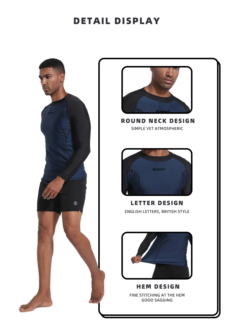 DEMMET Mens Swimwear Long Sleeve Rash Guard Swimming Surf T-Shirt UV Protection Quick Dry Beach Tight Surf Diving Clothes 120KG