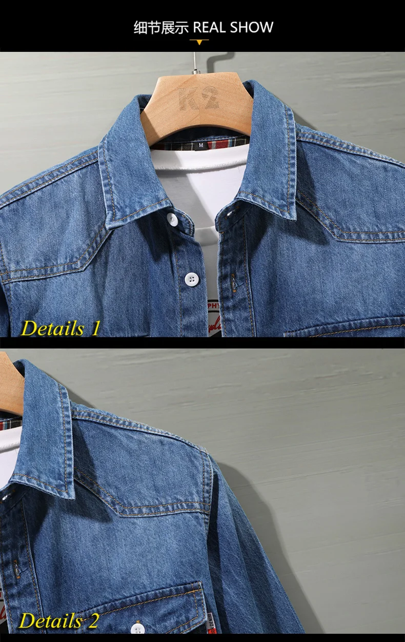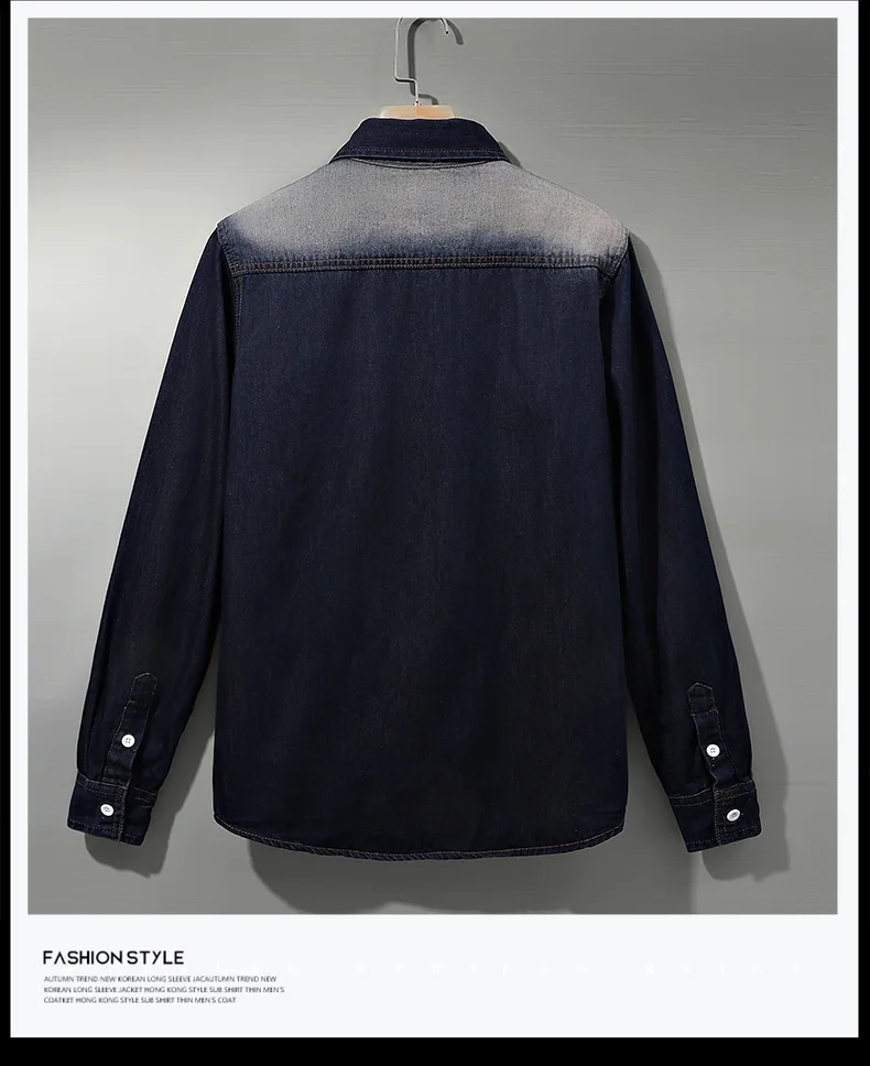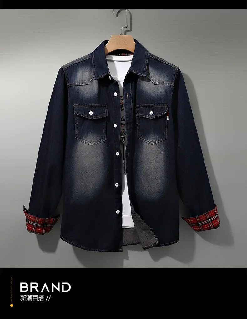 Denim Shirt Men Cotton Jeans Shirt Fashion Autumn Slim Long Sleeve Cowboy Shirt Stylish Wash Slim Tops Asian Size 4XL