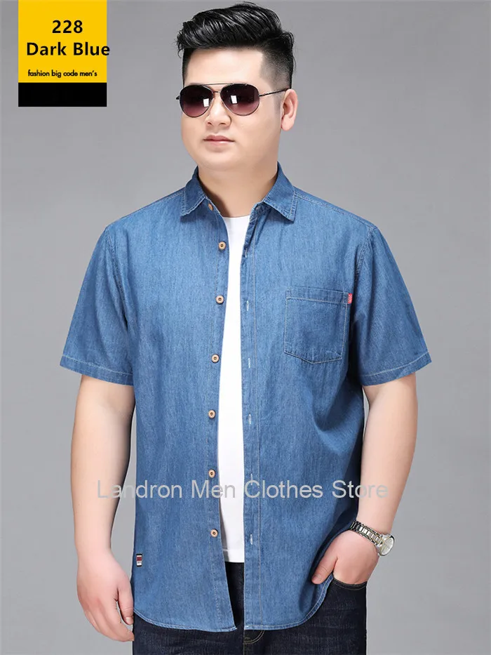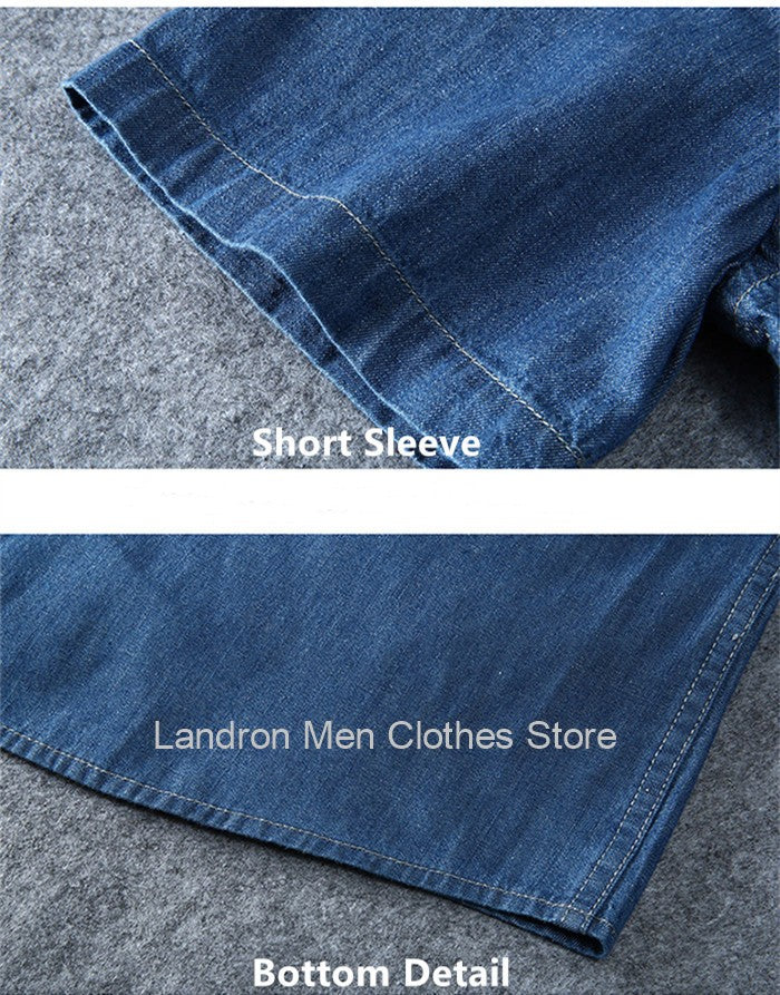 Denim Shirts Men Cotton Short Sleeve Summer Casual Jeans PLus Size 5XL 6XL 7XL Big Thin Boys Loose Blouse 8XL Man Male Camisa
