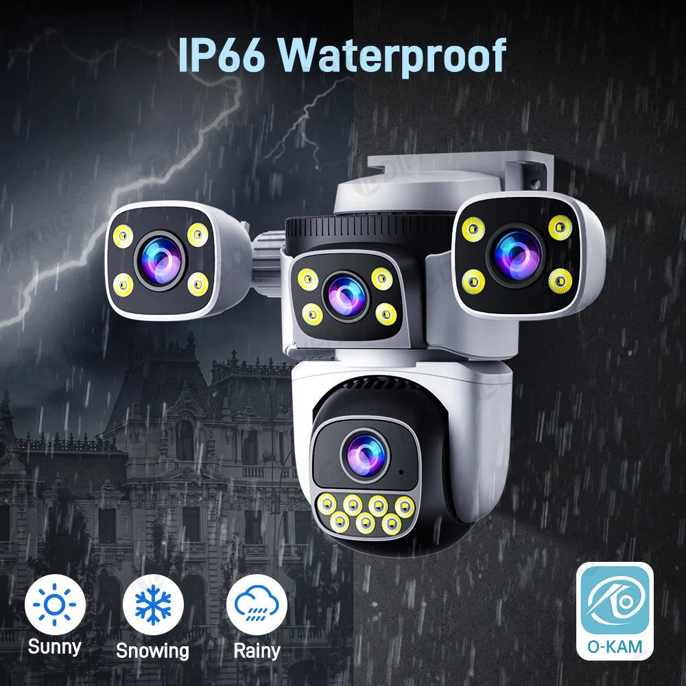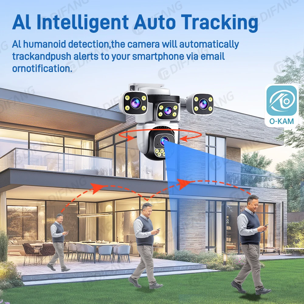 DIFANG New 10K 20MP 4 Screen WiFi6 Camera 4 Lens CCTV Surveillance Auto Tracking 5X Zoom PTZ Mini Street Video Camera OKam