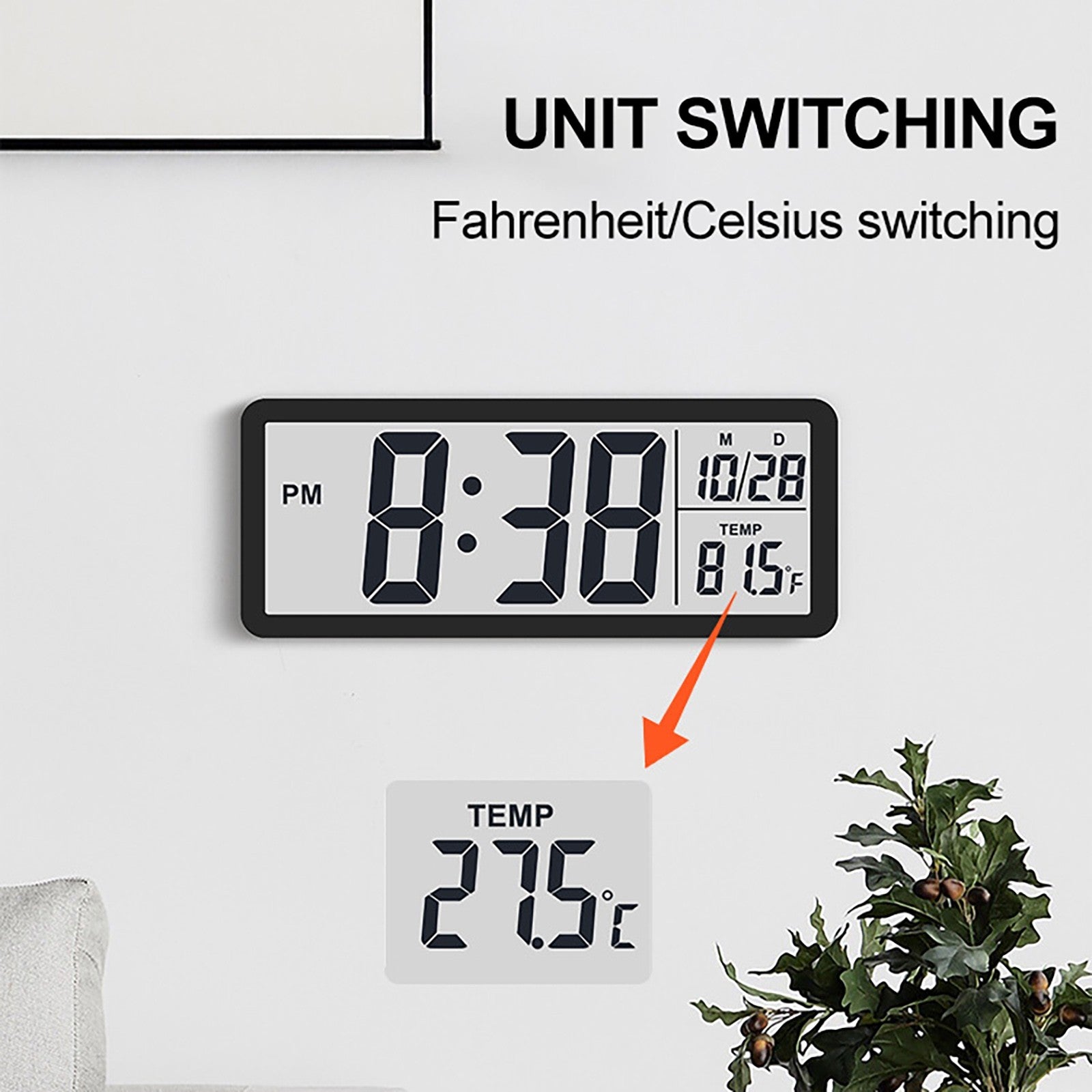 Digital Wall Clock Electronic Wall Mounted LCD Disply Clocks Multifunctional Temperature and Time Week Display Battery Powered
