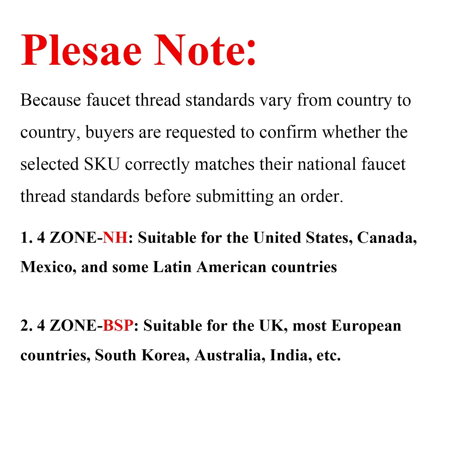 Warm Tips: Because faucet thread standards vary from country to country, buyers are requested to confirm whether the selected SKU correctly matches their national faucet thread standards before submitting an order.