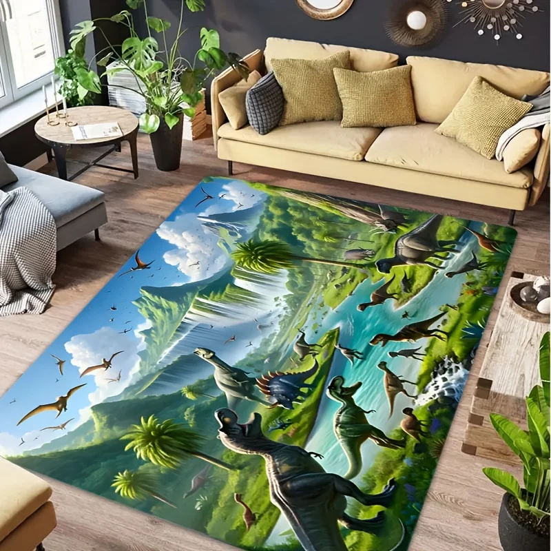 Dinosaur World doormat - A vibrant prehistoric scene in children's rooms, perfect for home decor and dinosaur enthusiasts