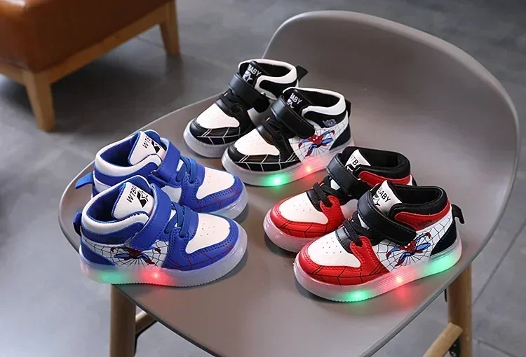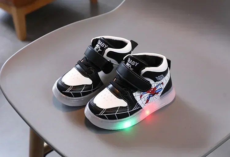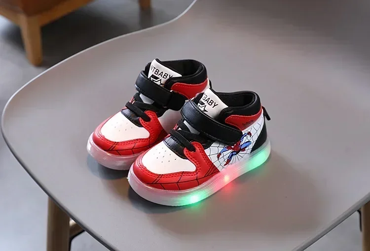 Disney Children's Led Light Shoes Fashion Aoger Spiderman Boys Sneakers Girls Cartton Casual Shoes Breathable Kids Sport Shoes