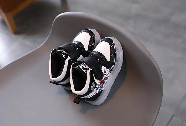 Disney Children's Sneakers Boys Girls Spiderman Led Light Sport Shoes Student Shoes Hook Anti-slip Kids Outdoor Basket Shoes