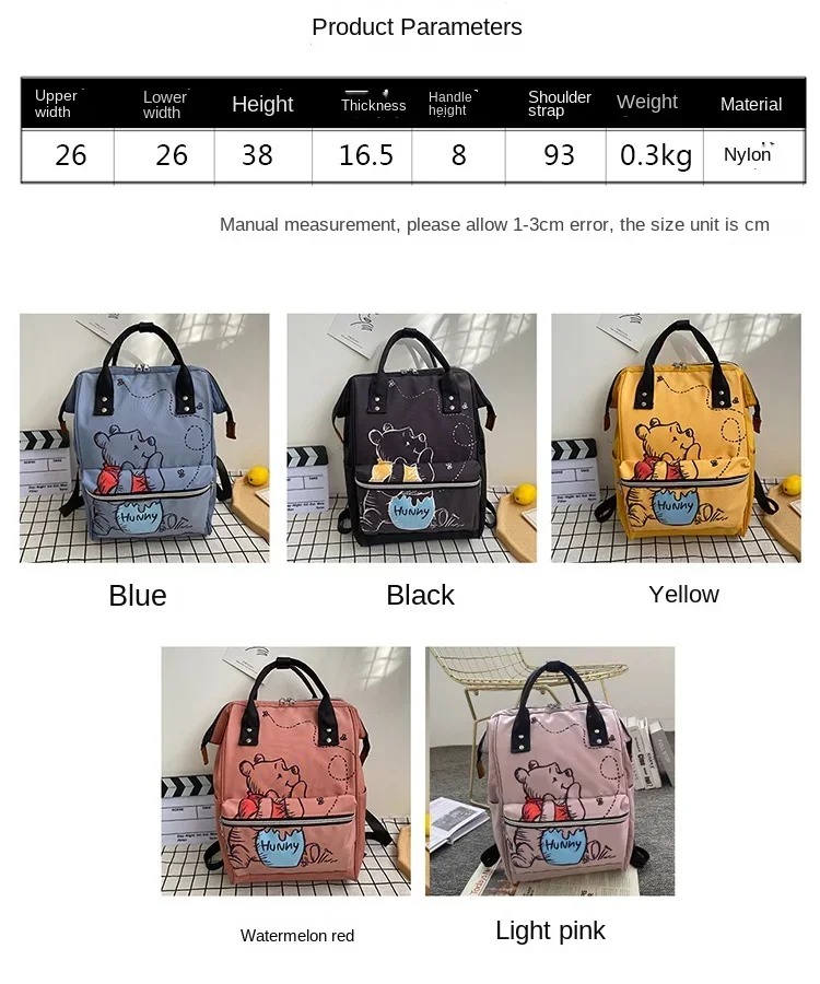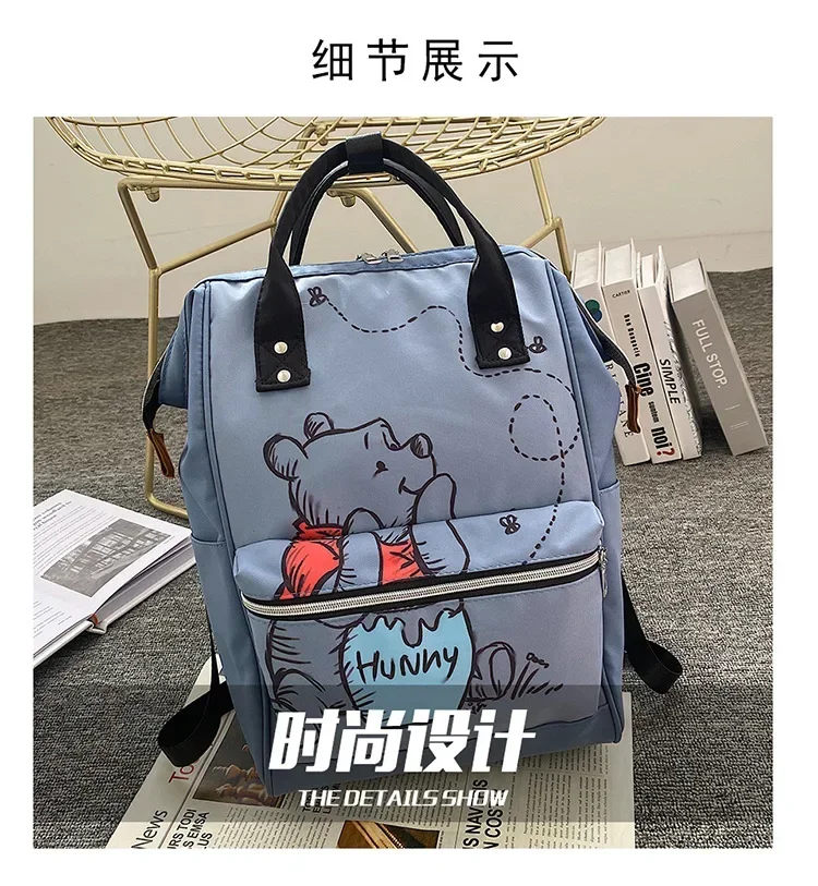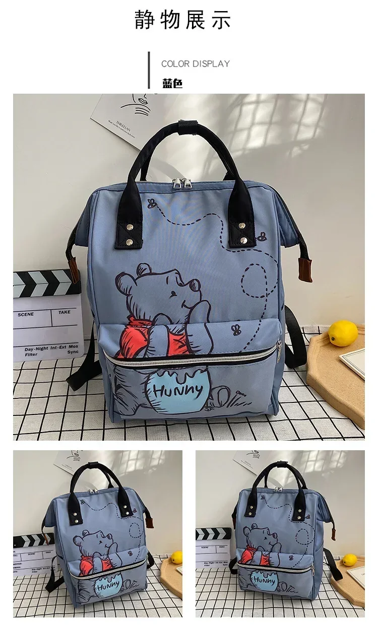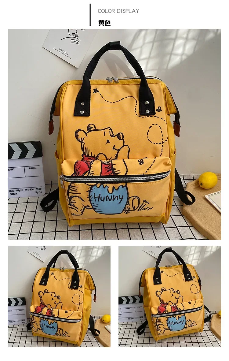 Disney Winnie The Pooh Diaper Bag Backpack Cartoon Cute Mother and Baby Bag Large Capacity Lightweight Travel Mommy Bag