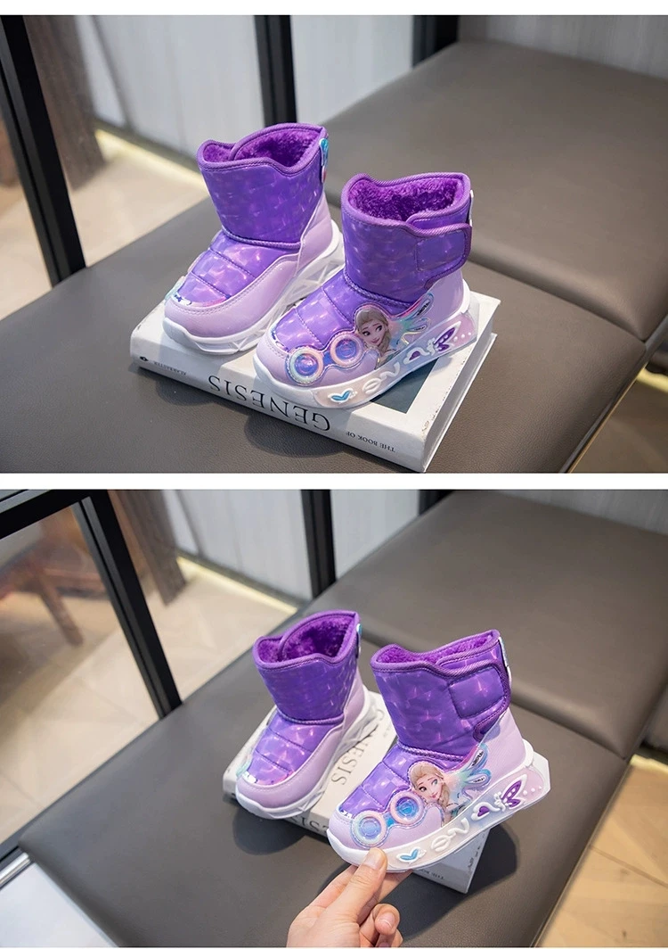 Disney Winter Children Shoes Plush Waterproof Non-Slip Girl Frozen Princess Elsa Shoes Snow Boots Fashion Warm Outdoor Boots