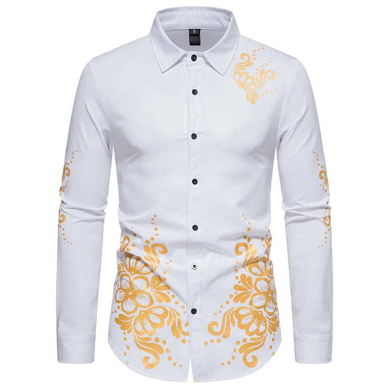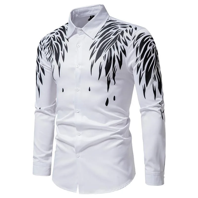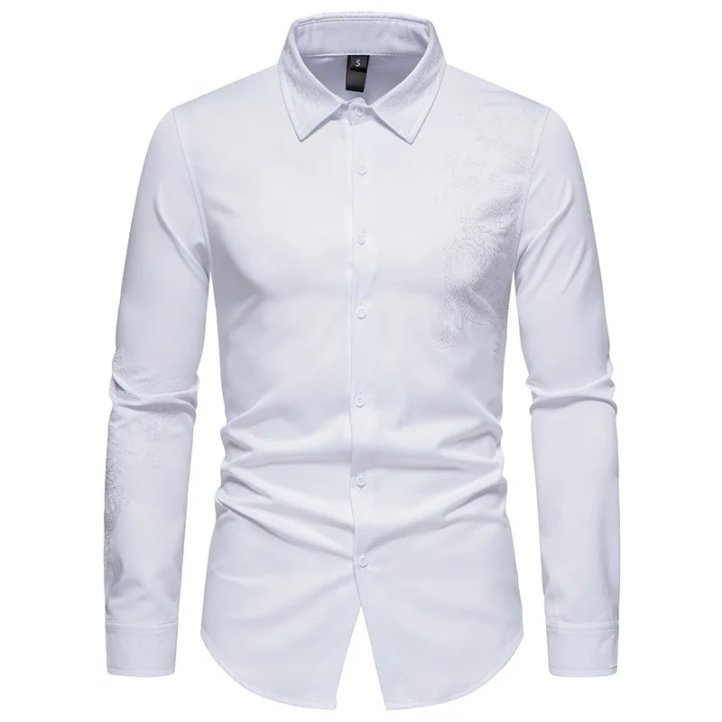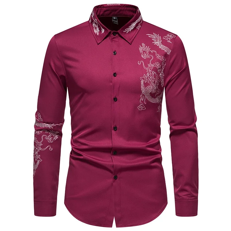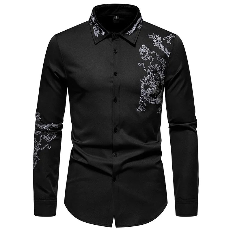 Dragon Embroidered Long Sleeve Shirt Autumn and Winter Single Breasted Slim Fit Button Retro Social Dress Shirt Street Wear