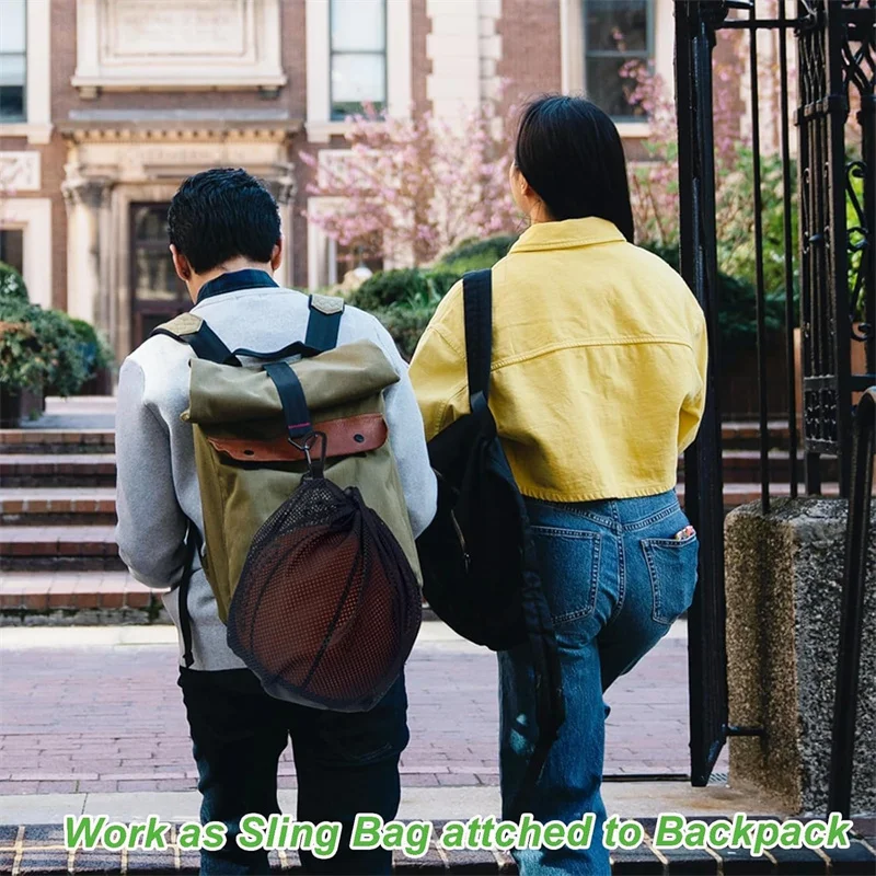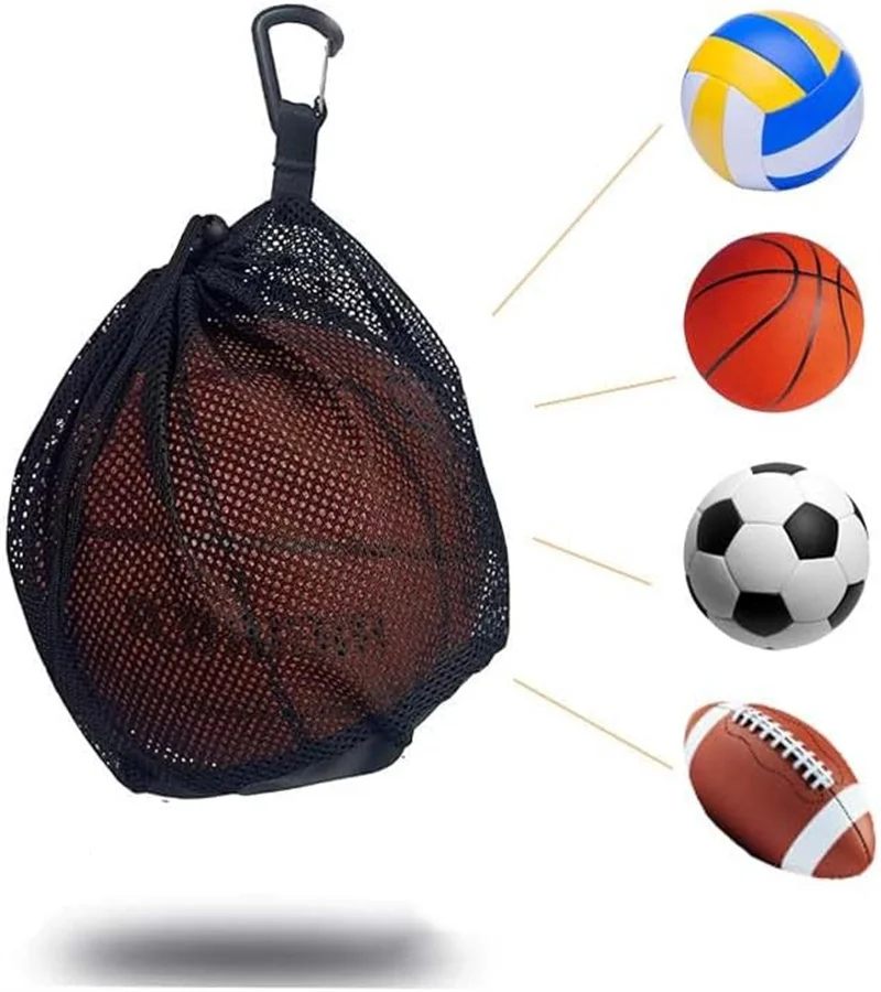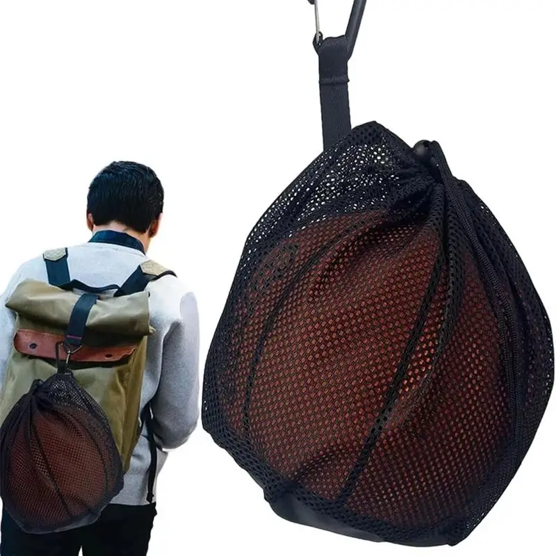 Drawstring Portable Backpack Hanging Small Ball Bags Sports Football Volleyball Basketball Storage Bags Game Toy Mesh Pocket Bag