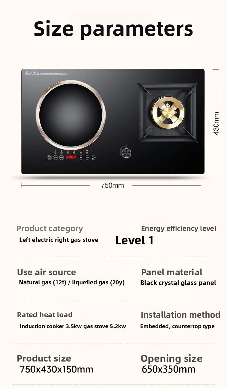 Dual Fuel 3500W Gas Electric Cooker Household Concave Induction Cooktop Class Energy Built-in Countertop Natural Gas Easy Table
