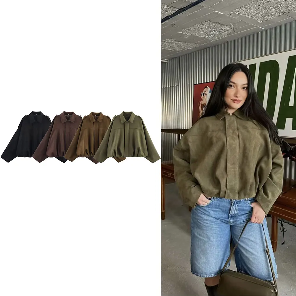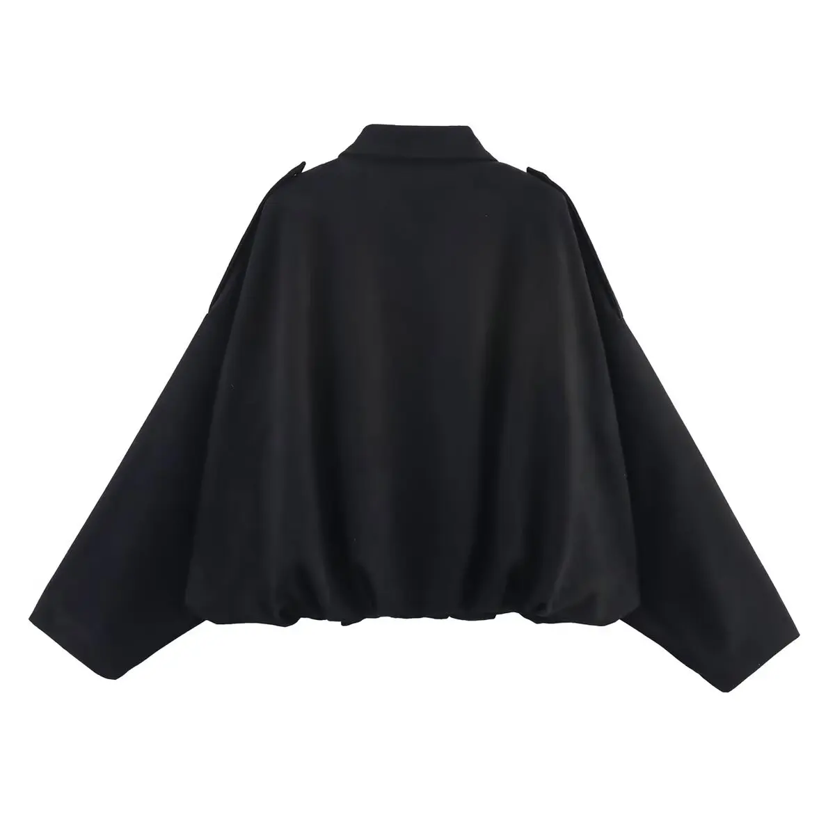 DUOPERI Women 2025 New Solid Bomber Jackets Lapel Neck Long Sleeves Female Elegance Chic Casual Jacket Tops