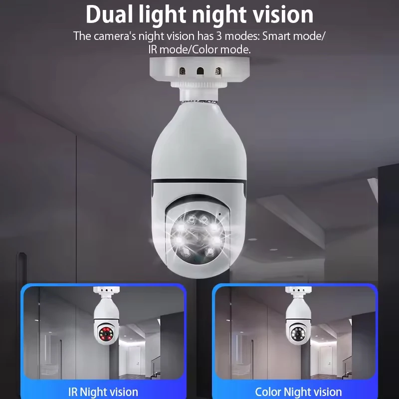 E27 Bulb Surveillance Outdoor Security Camera Automatic Night Vision Color Indoor Motion Detection Focus Zoom WiFi Camera
