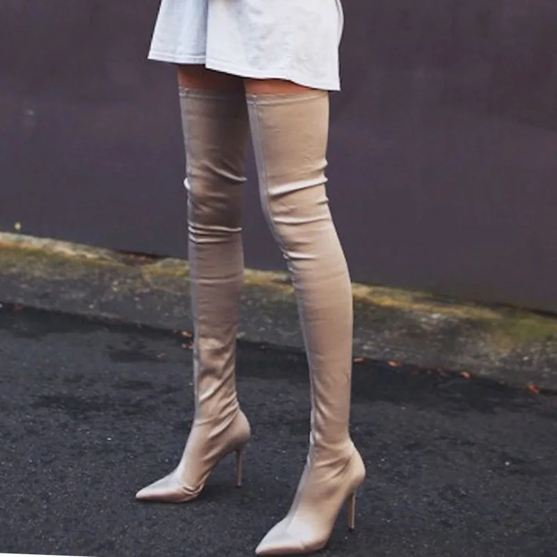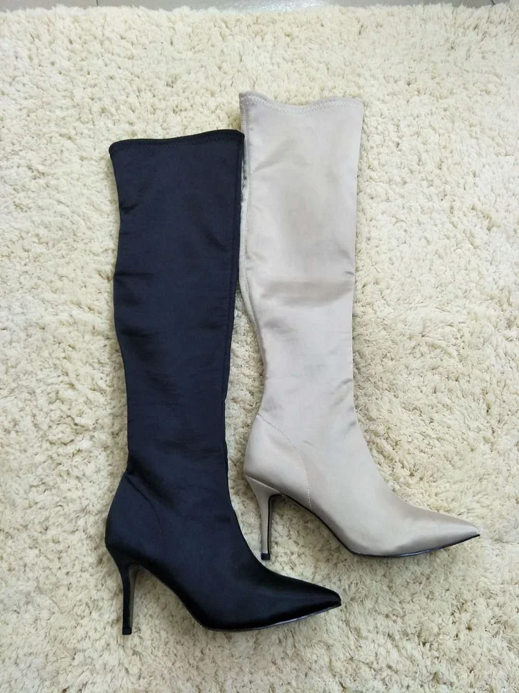 Eilyken Thigh High Over The Knee Elastic Stretch Boots Women Sexy Thin Heels Sock Long Boots Mujer