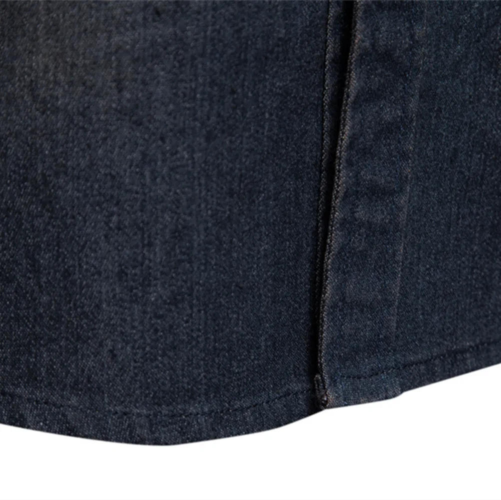 Elastic Cotton Denim Shirt High Quality Men Long Sleeve Solid Color Pocket Shirts for Men Casual Slim Fit Mens Designer Clothing