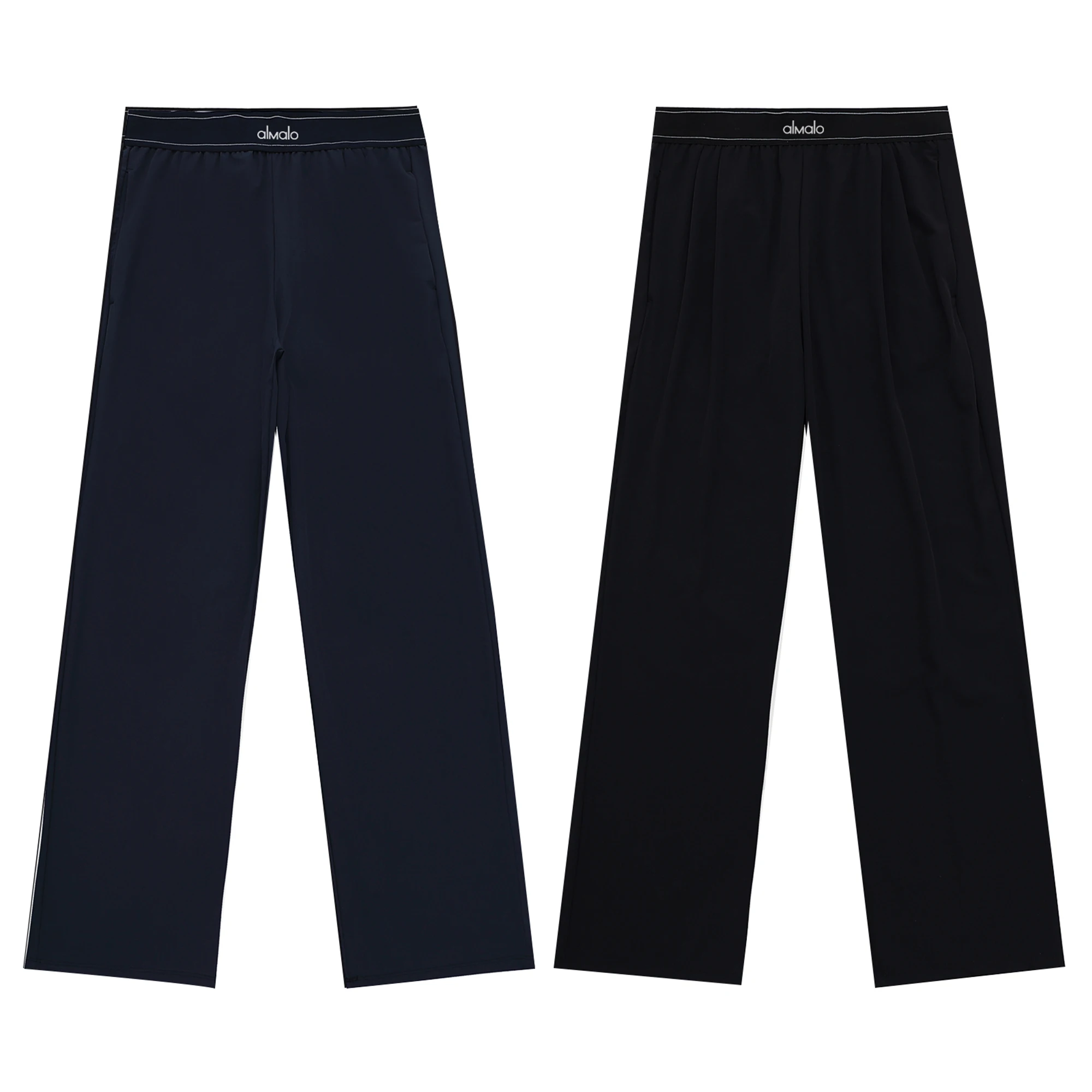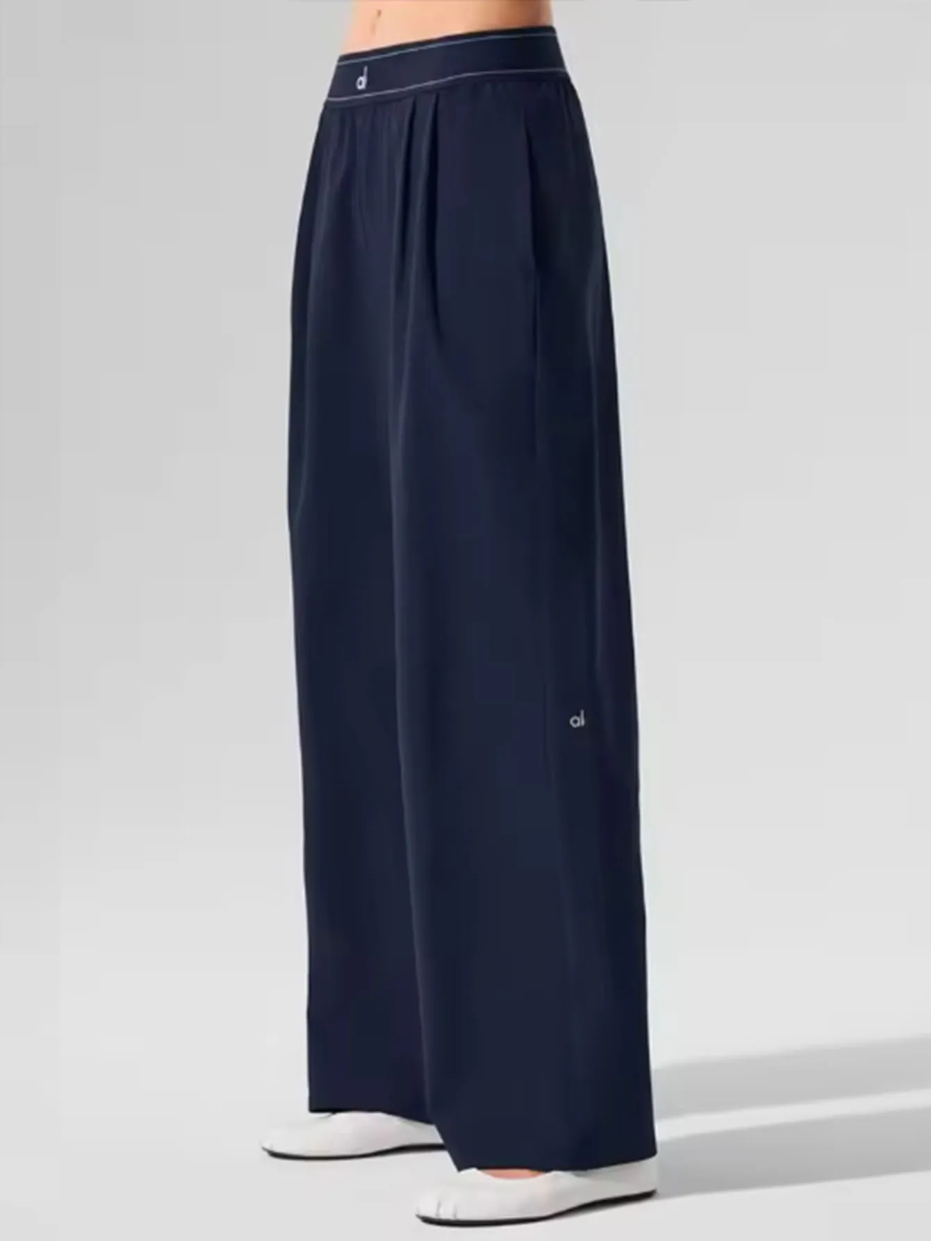 Elastic Waist Solid Fitness Joggers Trousers Women Yoga Sports Wide Leg Pants Women Thin Casual Loose Navy Blue Baggy Sweatpants