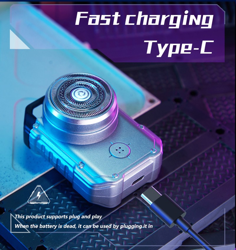 Electric MINI Travel Shaver Razor For Men Rechargeable IPX7 Waterproof Punk Mecha Design Pocket Face Beard Knife With Key Ring