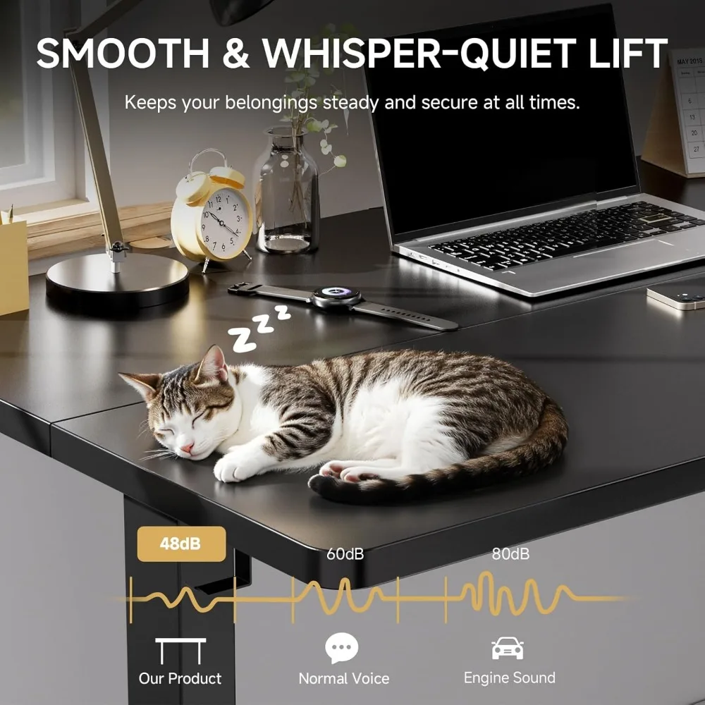 • QUIET AND POWERFUL MOTOR: This standing desk adjustable height features a high-quality motor for smooth and quiet height adjustments at 1 inch per second, with noise levels under 50 dB. Tested for durability, it can handle over 50,000 cycles, ensuring reliable performance for years.