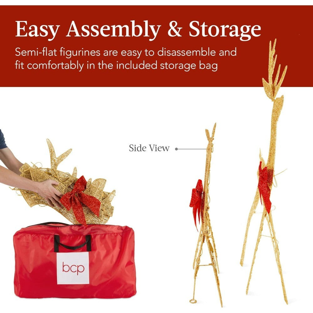 Elegant 4ft 3-Piece 2D Illuminated Christmas Deer Family, Large Outdoor Yard Decoration with 175 Lights