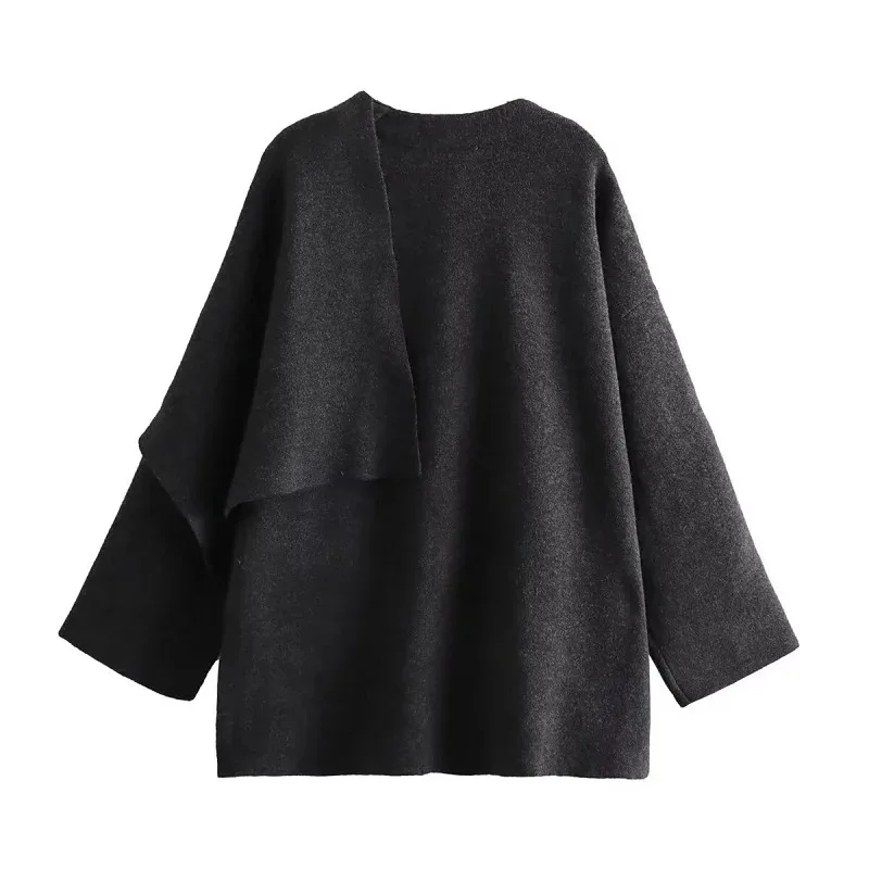 Elegant Coat Women Scarf Collar Long Sleeve Button Irregular Jackets European and American Style Streetwear Casual Outerwear