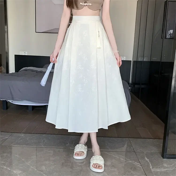 Elegant Embroidered High Waist Midi Skirt Women's New Chinese Style A- Line Half Body Skirt for Summer Fashionable Versatile