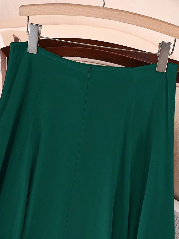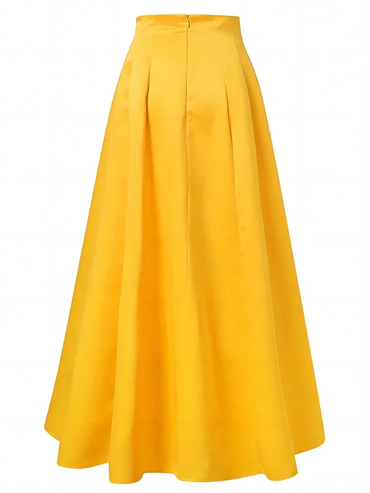 Elegant Satin A-line Long Skirts for Women High Quality Smooth Party Maxi Skirt with Pockets Y2K Lady Solid Women's Skirts