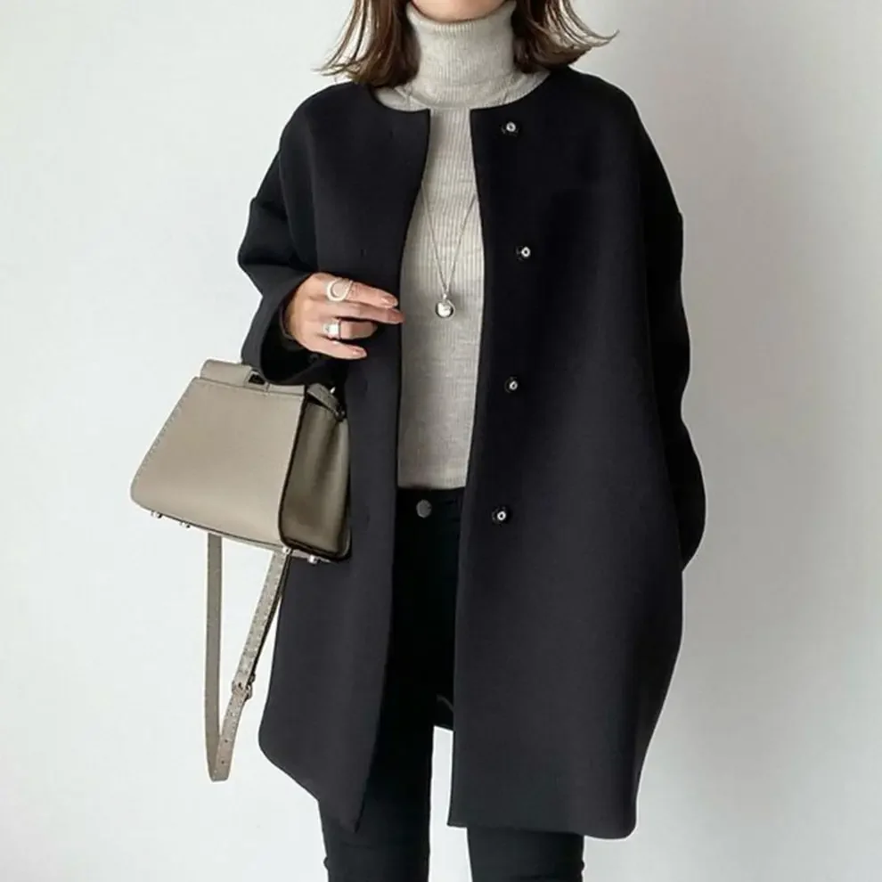 Elegant Three-Color Straight-Leg Coat for Women Loose Fit Pure Color Simple Design Autumn Winter Outerwear Female Top