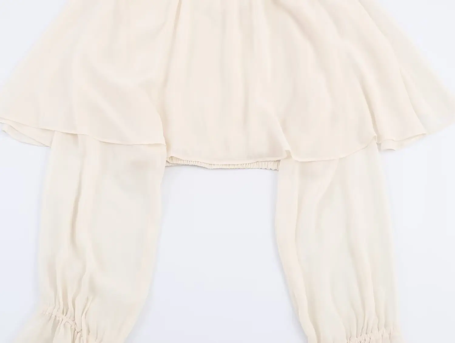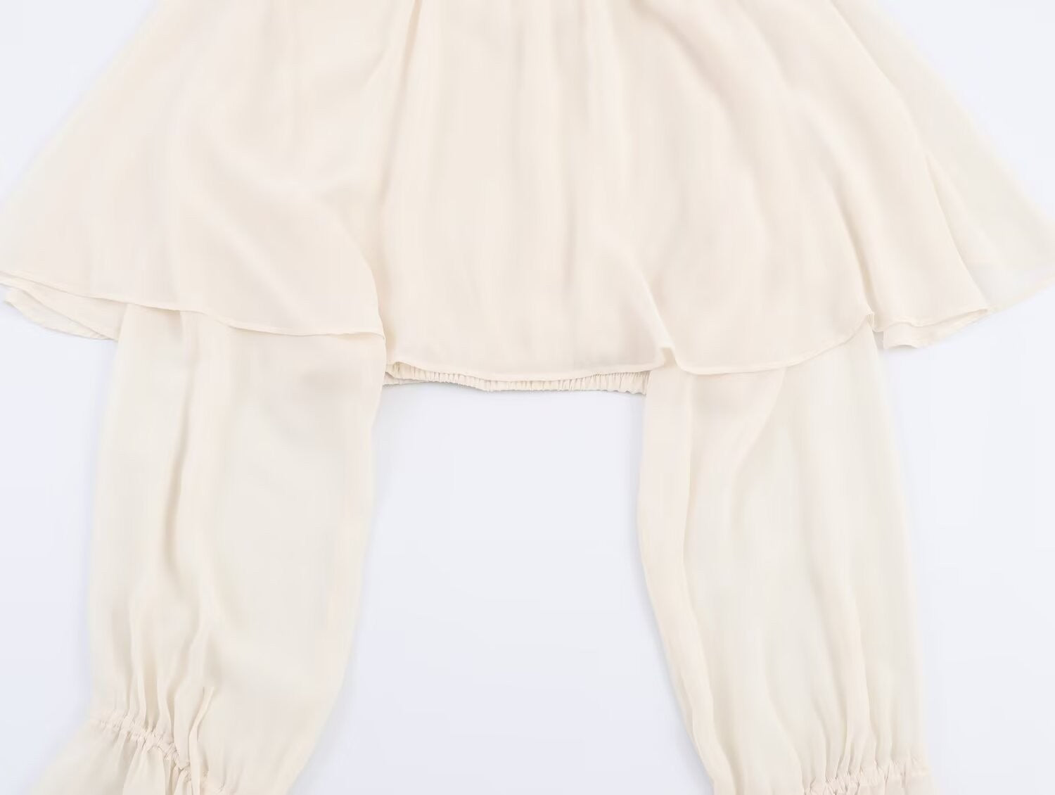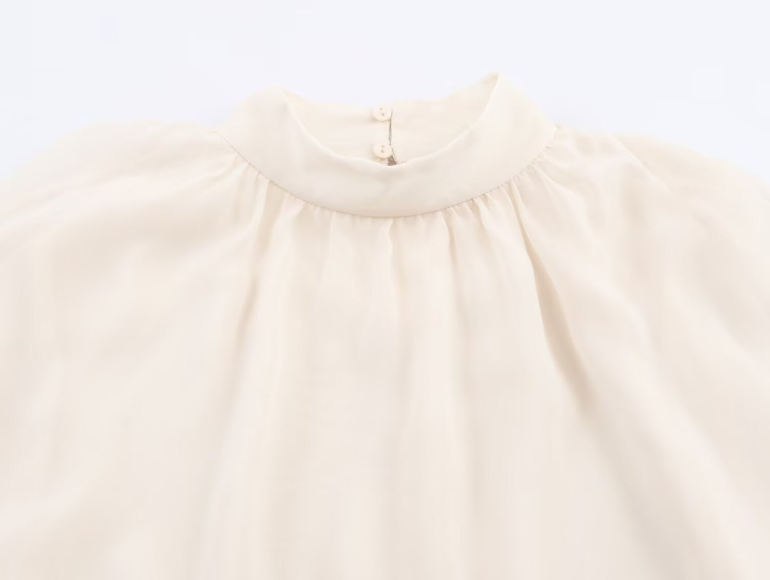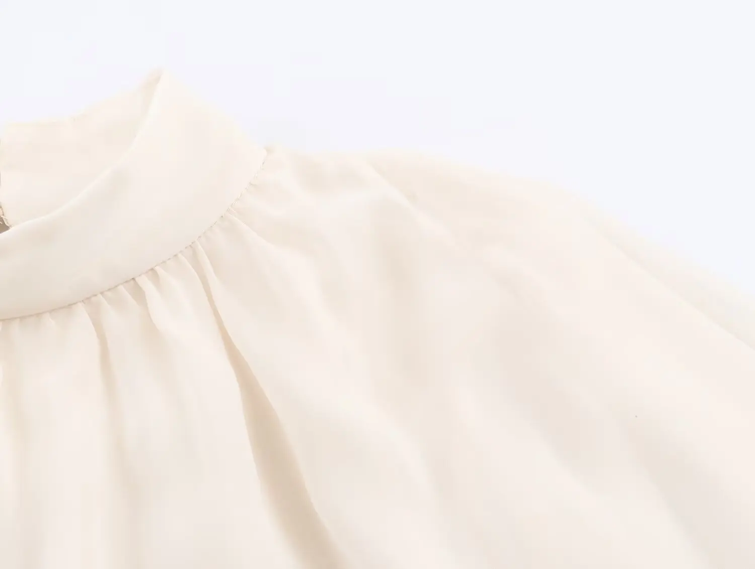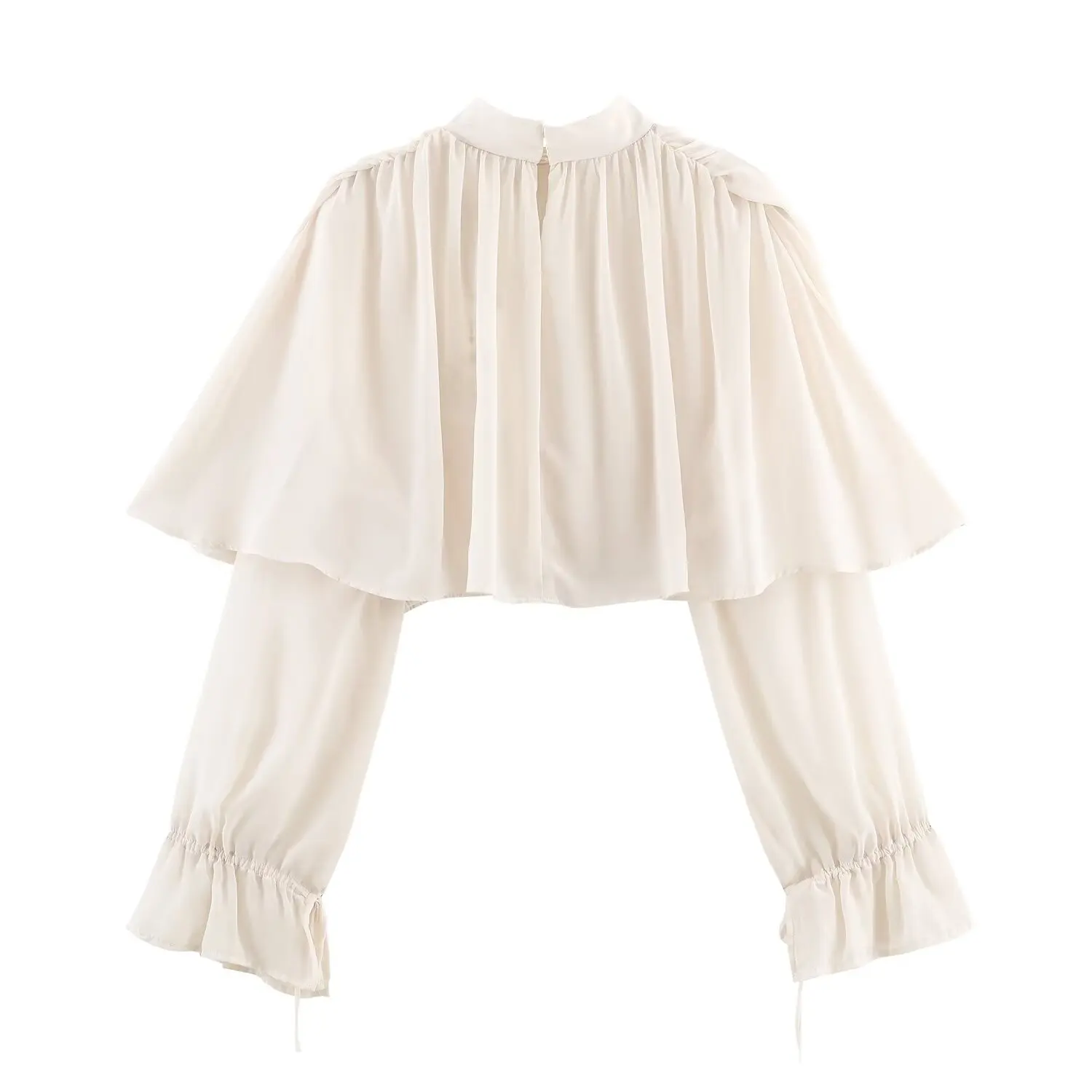 Elegant Women's Tierred Ruffles Blouse Chic Long Sleeve Loose Crop Shirt 2026 Spring New Chic Half High Collar Woman Solid Top