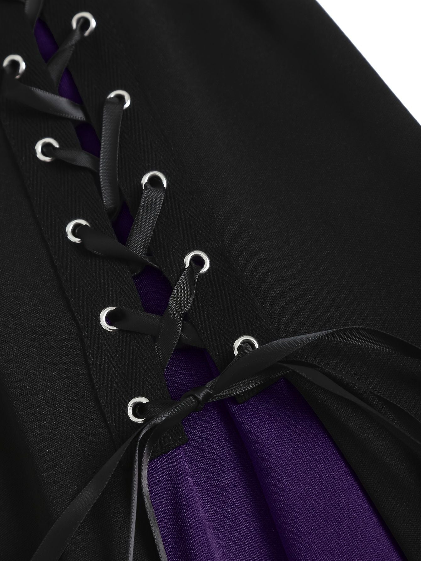 European and American fashion women's plus-size skirt color matching buttonhole lace-up high waist A-line skirt