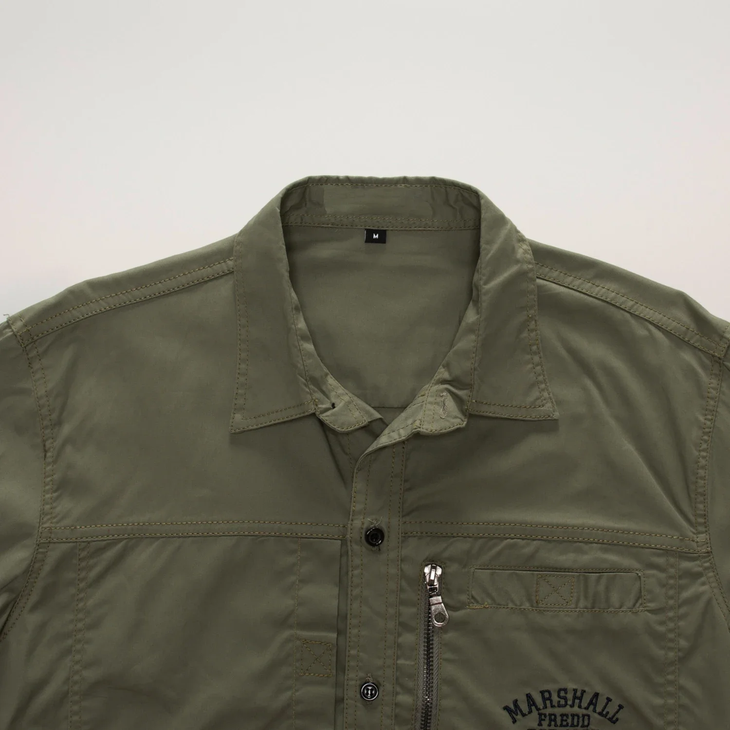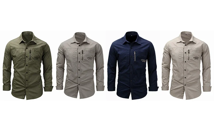 European Size Men's Shirt Cotton Multi-Pocket Button Up Green Navy Cargo Shirt Long Sleeve Button Down Hiking Fishing Work Shirt