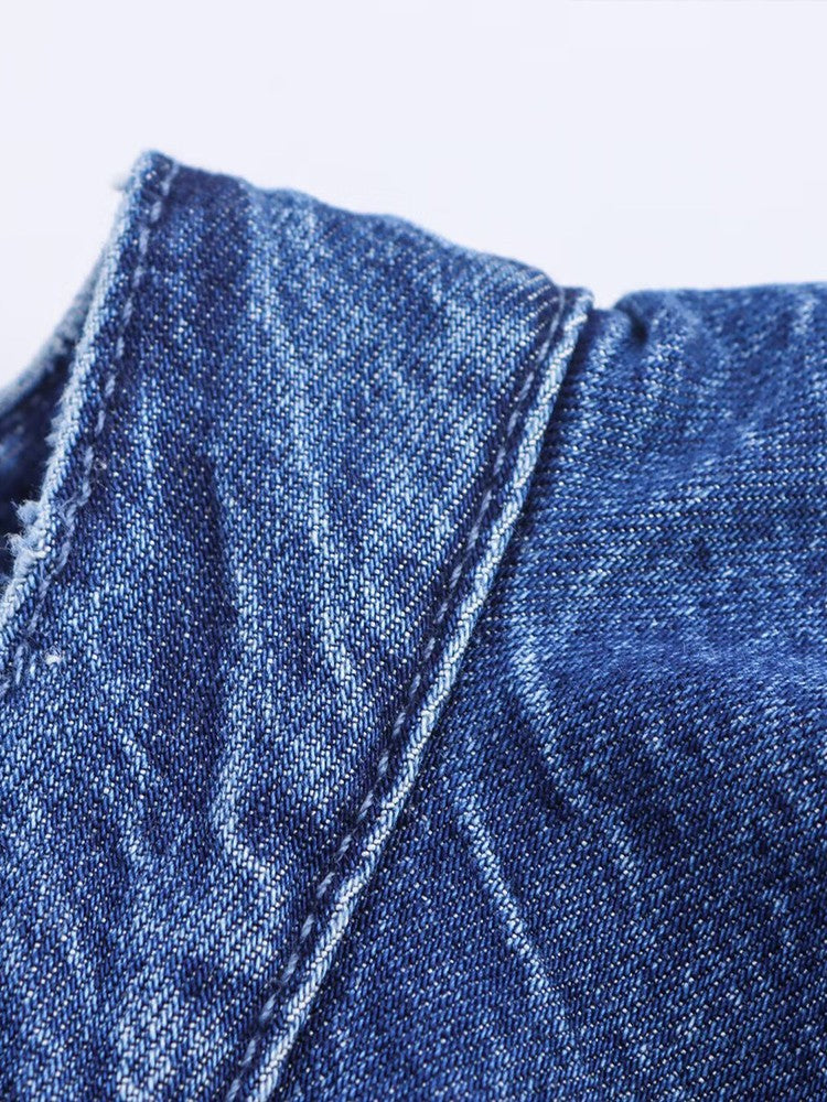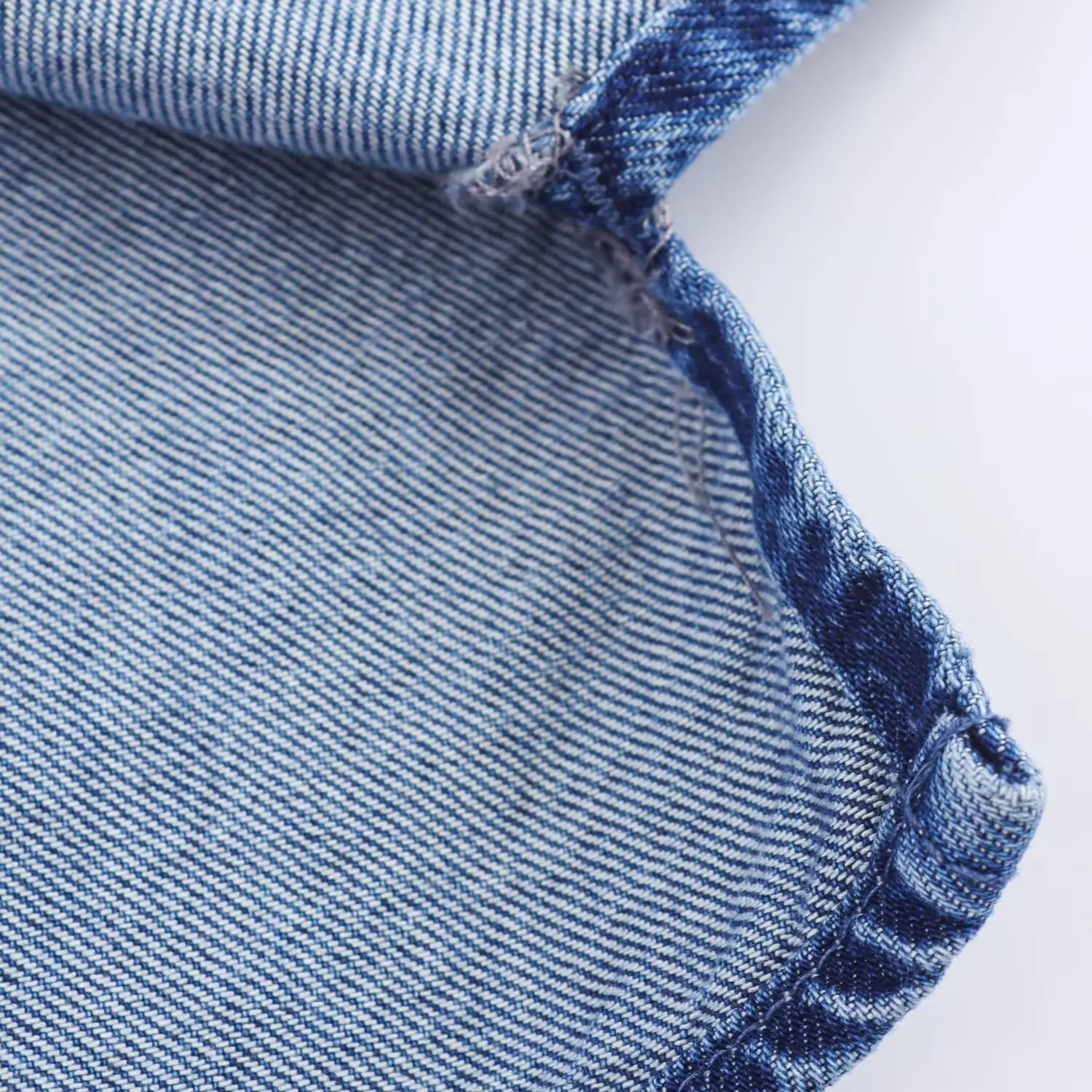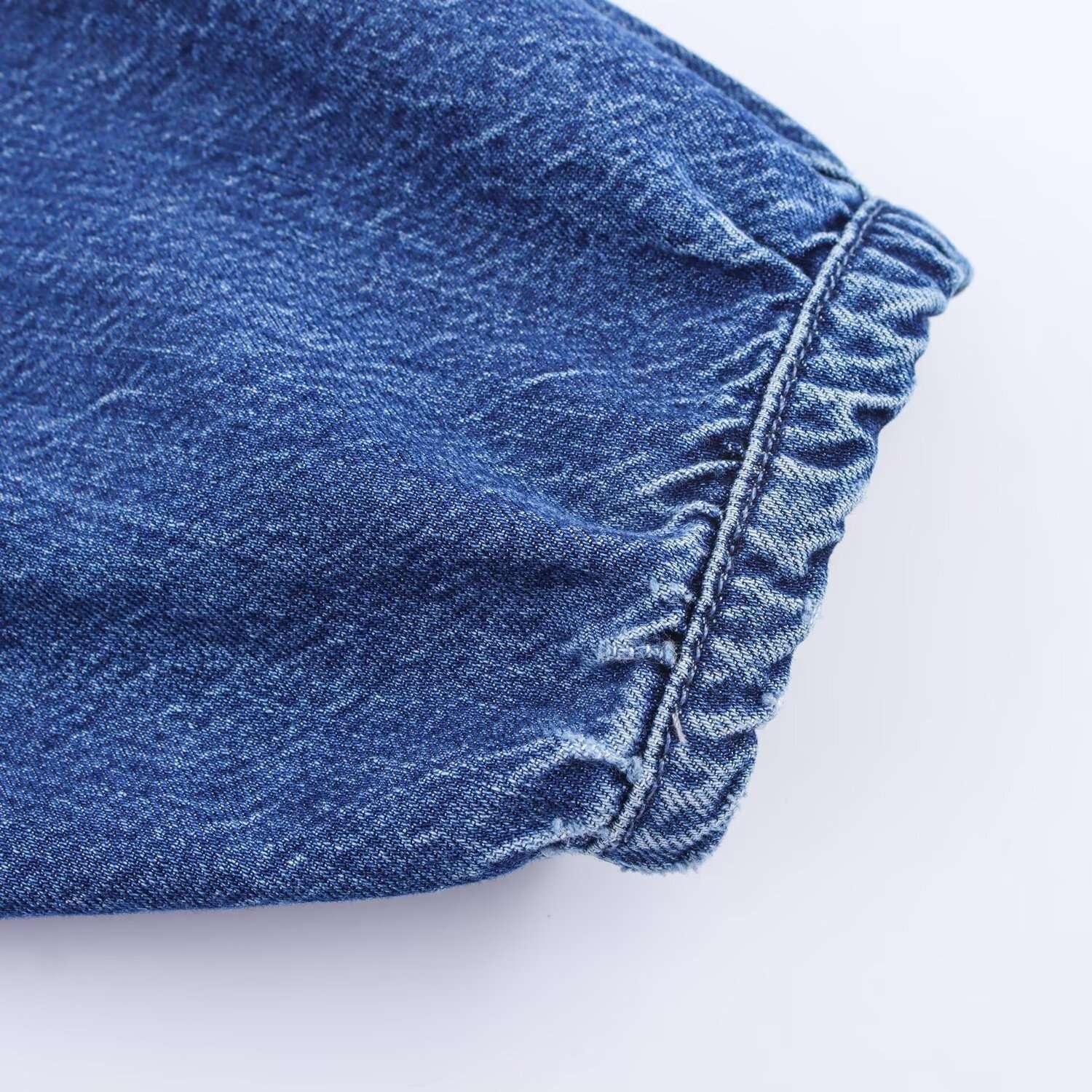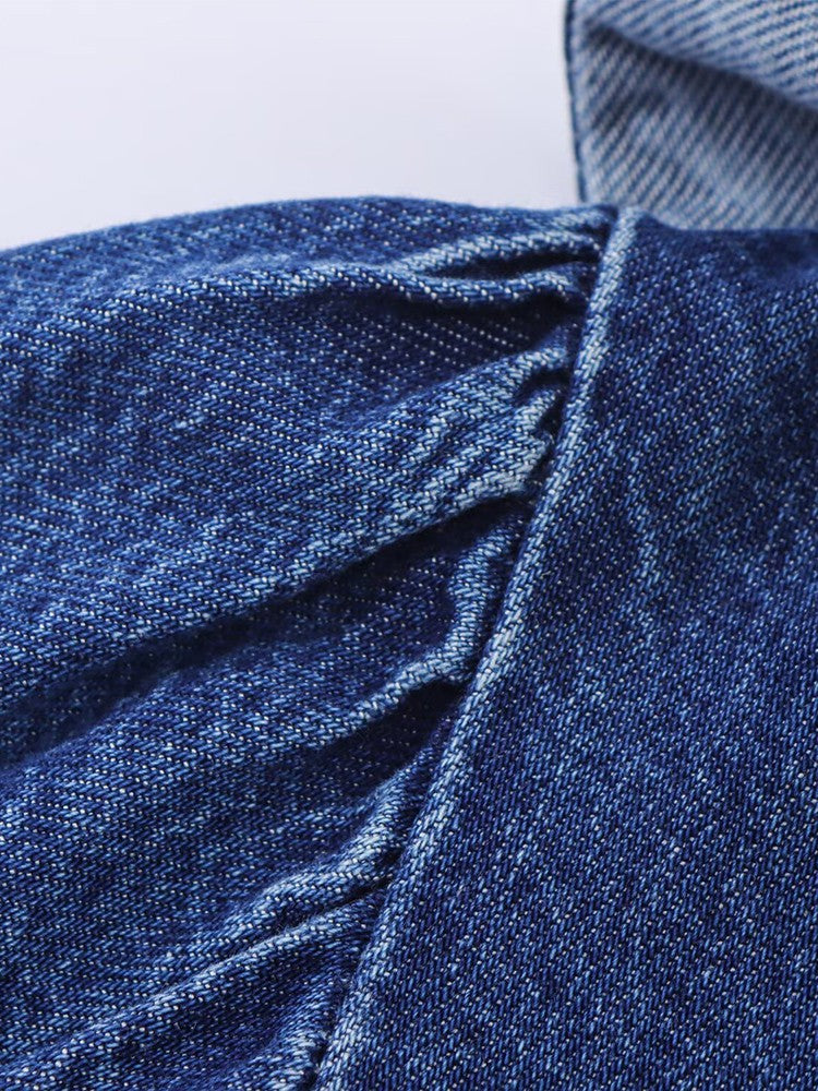 European style new women's fashion all-match temperament lotus leaf lace V-neck long-sleeved denim shirt