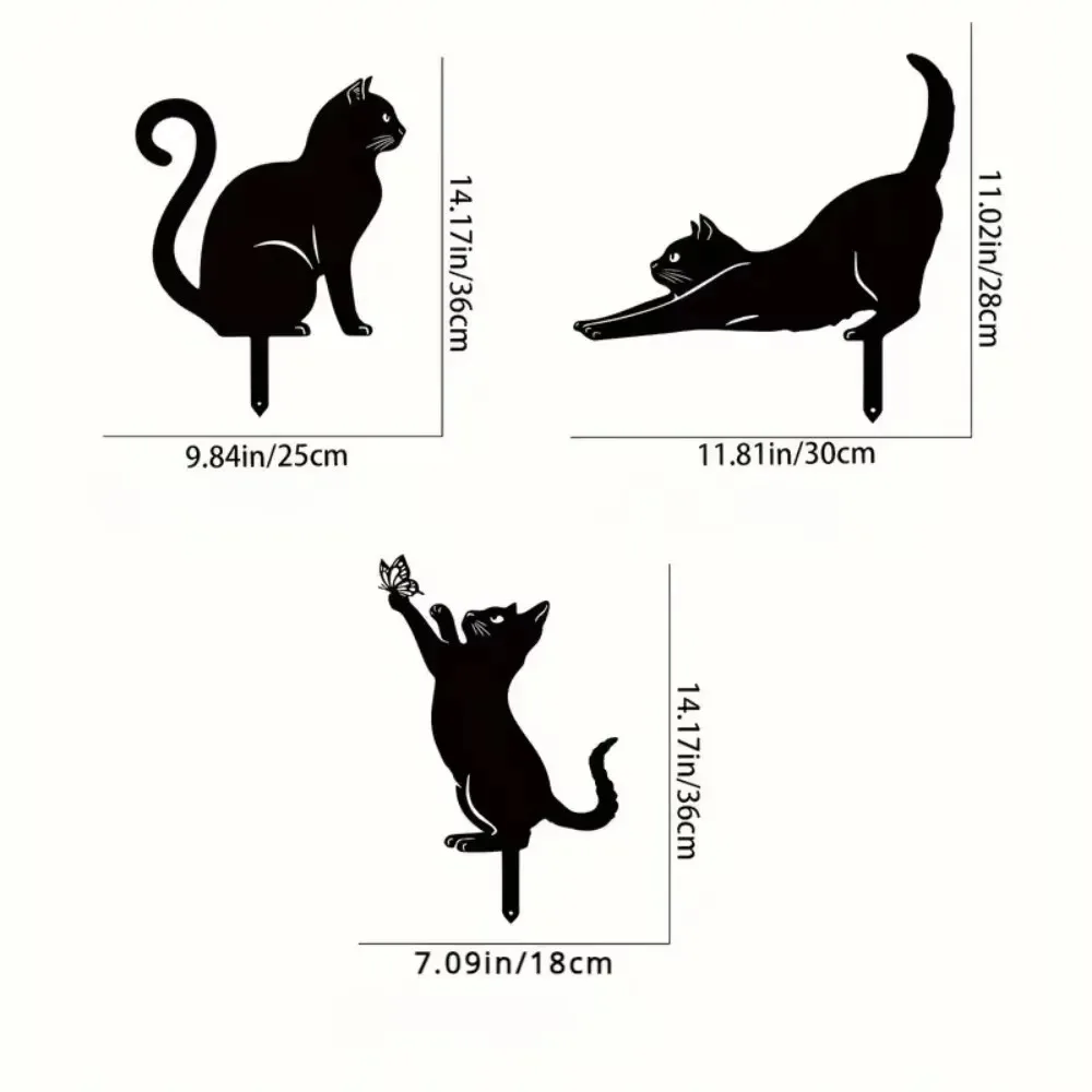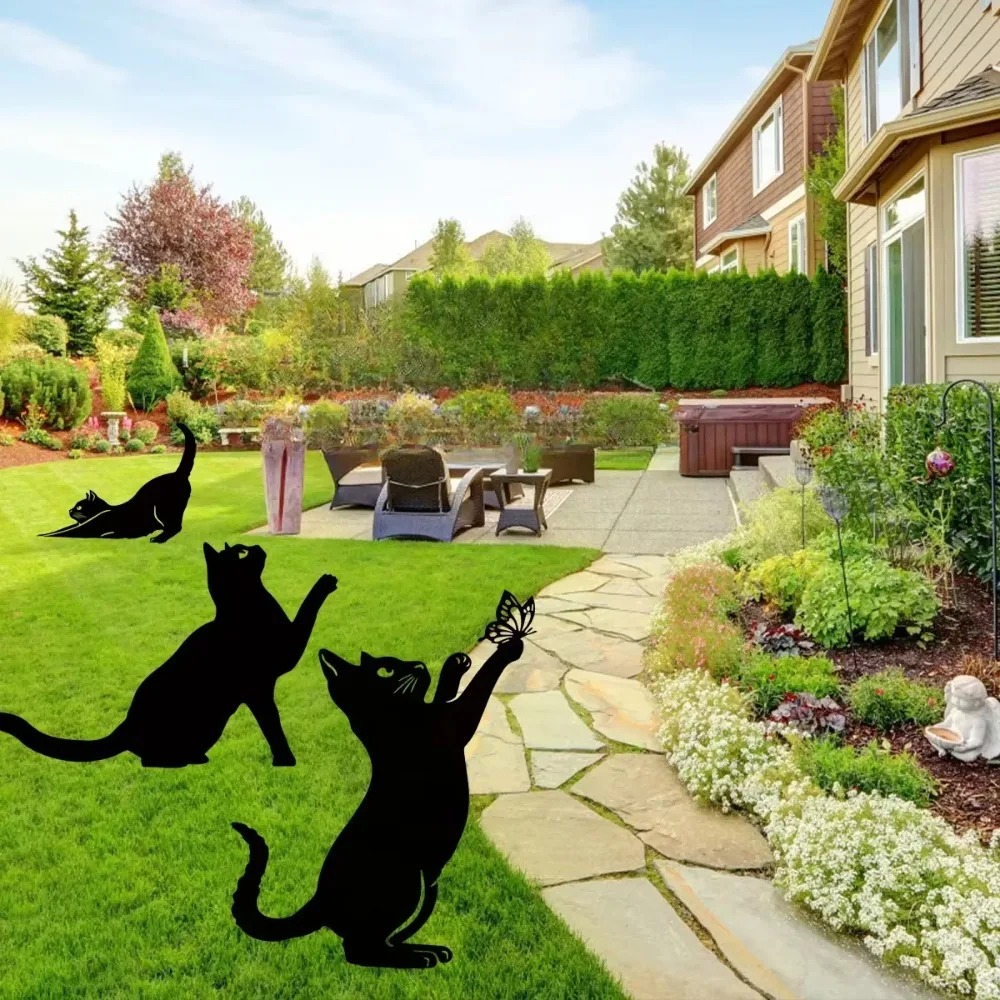 Exclusive Cute Cat Garden Decorative Silhouette - Tiki-Inspired Cat Family Garden Stakes | Perfect Outdoor Statues for Garden