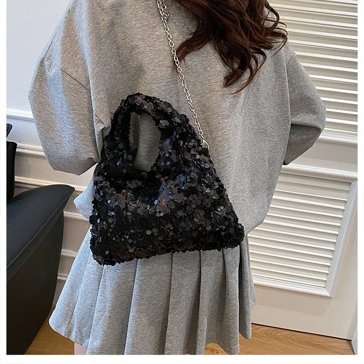 Exquisite Shining Sequins Square Women's Shoulder Bag Popularity Stylish Design Handbags High Quality Solid Sweet Crossbody Bags