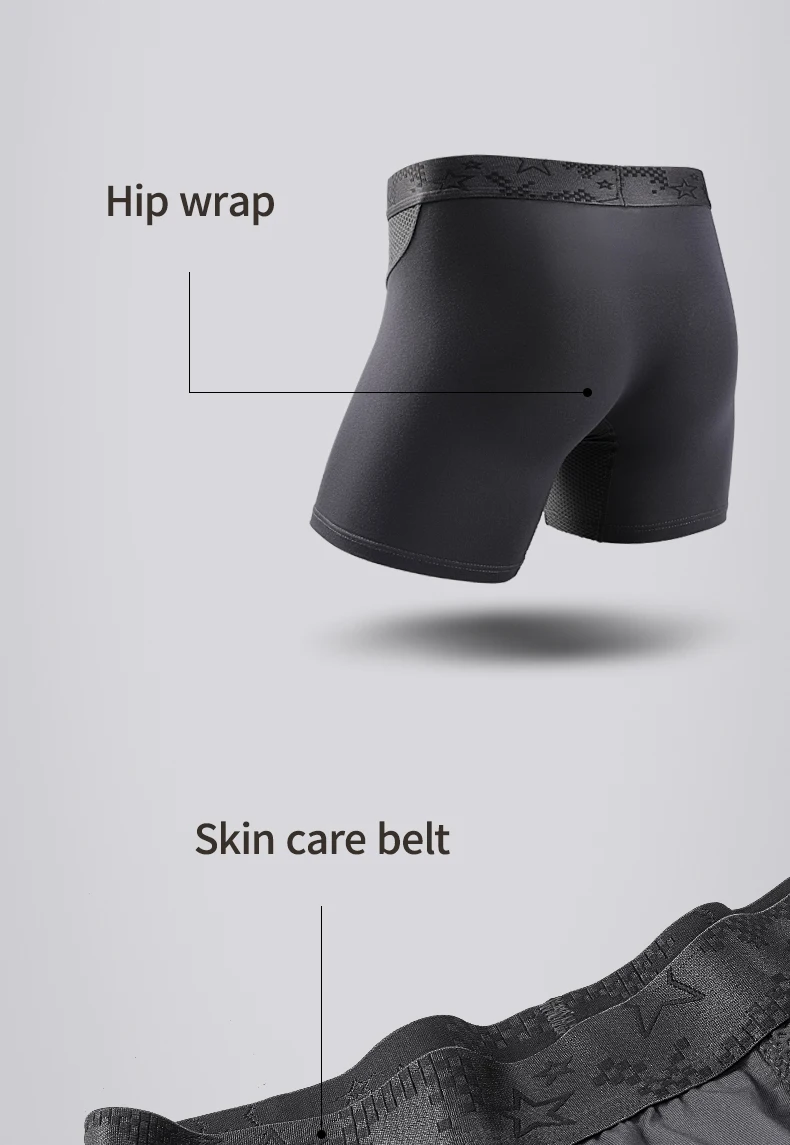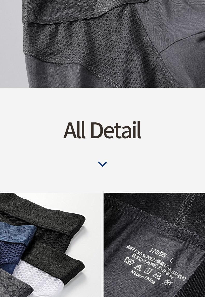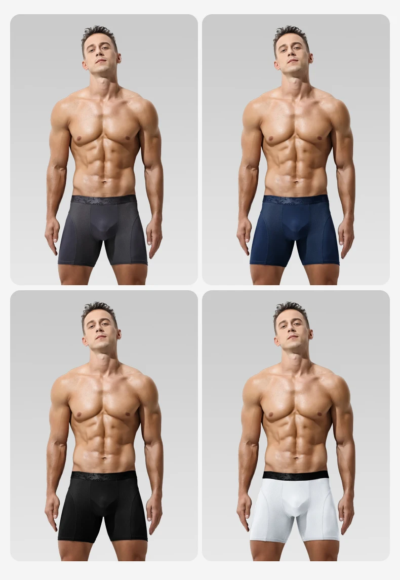 Extra Long Sports Underwear Men's Boxer Briefs Anti-Wear Leg Running Large Size Breathable Training Boxer Briefs