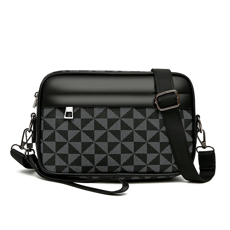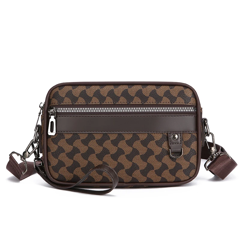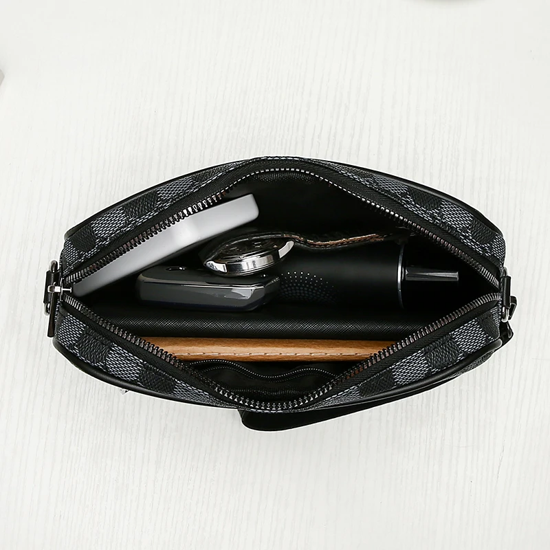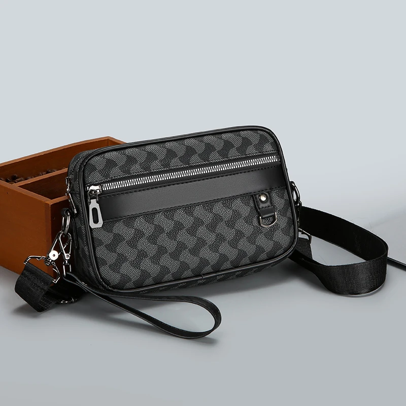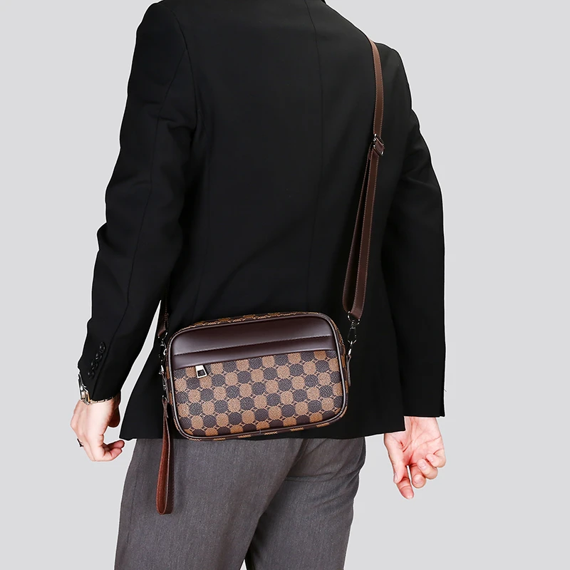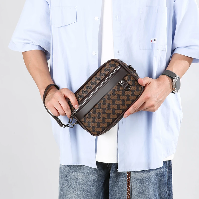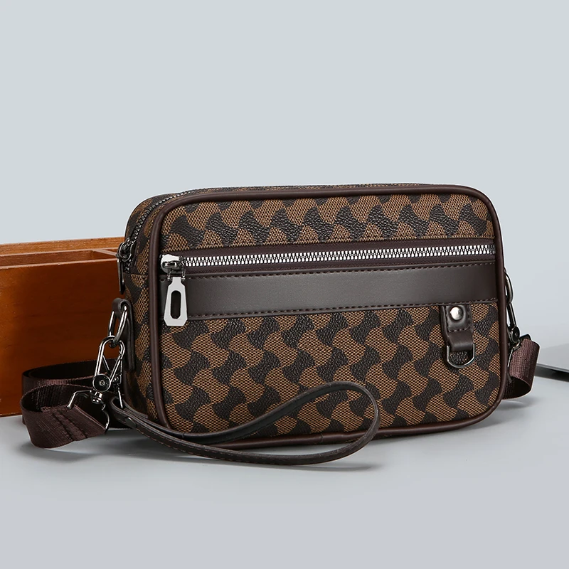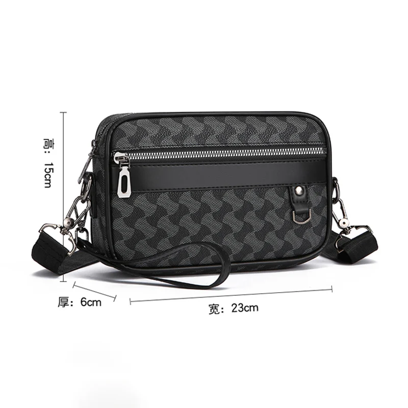 Fashion Business Shoulder Bag PU Leather Men Clutch Bag Wide Strap Crossbody Bag Designer Casual Male Messenger Pack Phone Purse