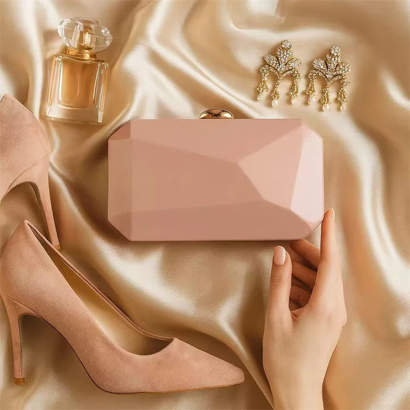 Fashion Clutch Bags for Women Glossy PU Evening Purse Burgundy Geometric Shape Female Handbag Special Valentine's Day Gift