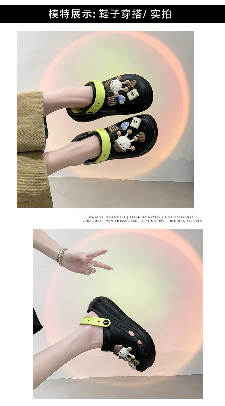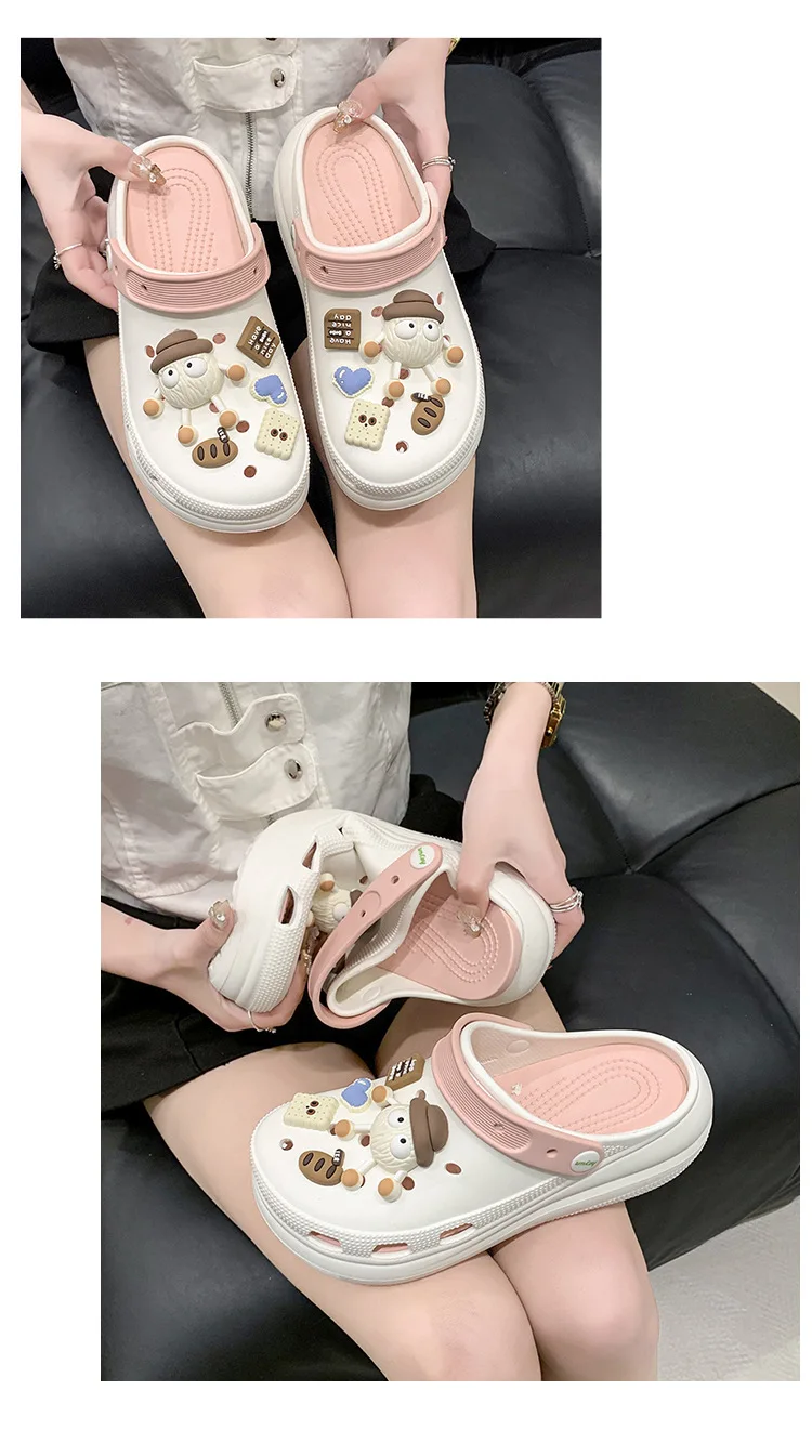 Fashion Diy Clogs Sandals Women 2024 Summer Chunky Platform Slippers Woman Thick Bottom Closed Toe Beach Slippers Mujer