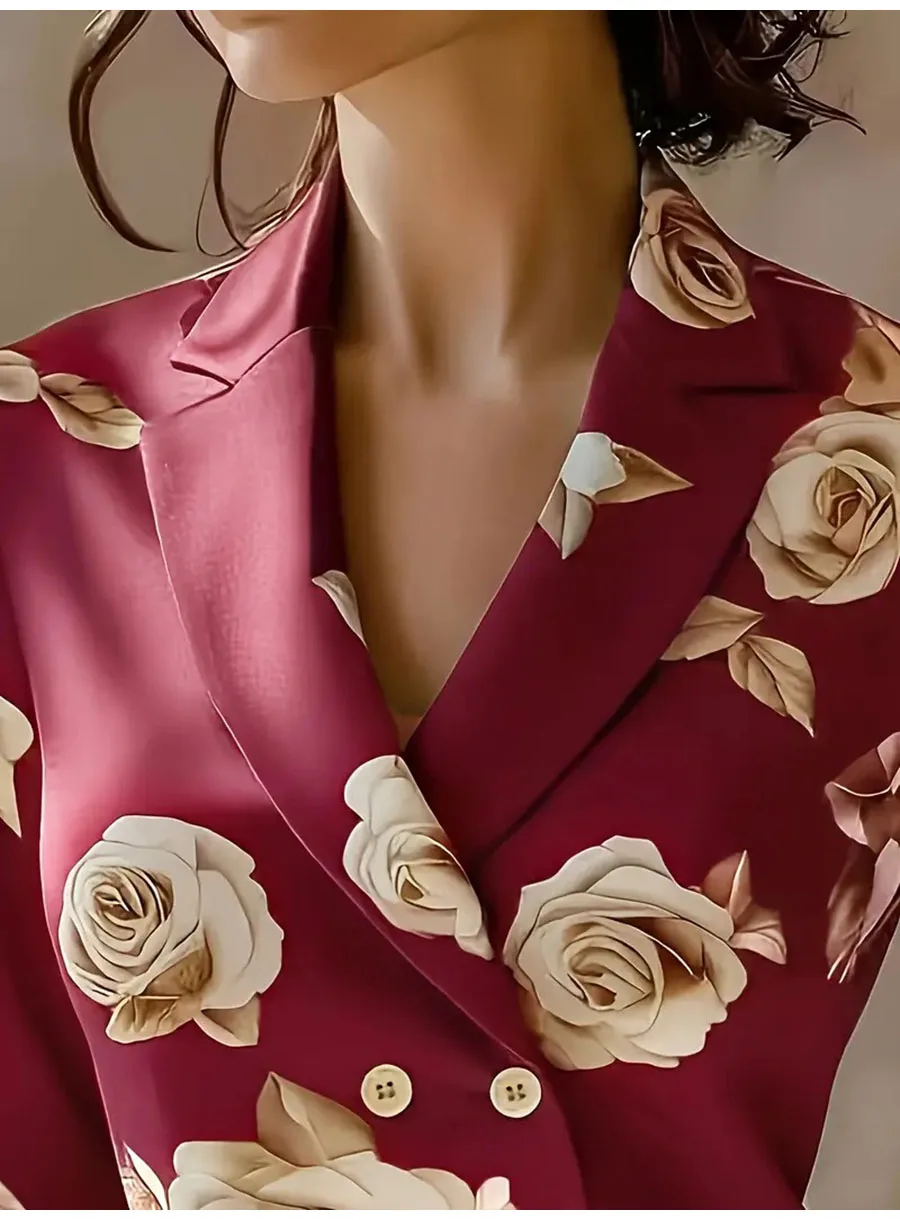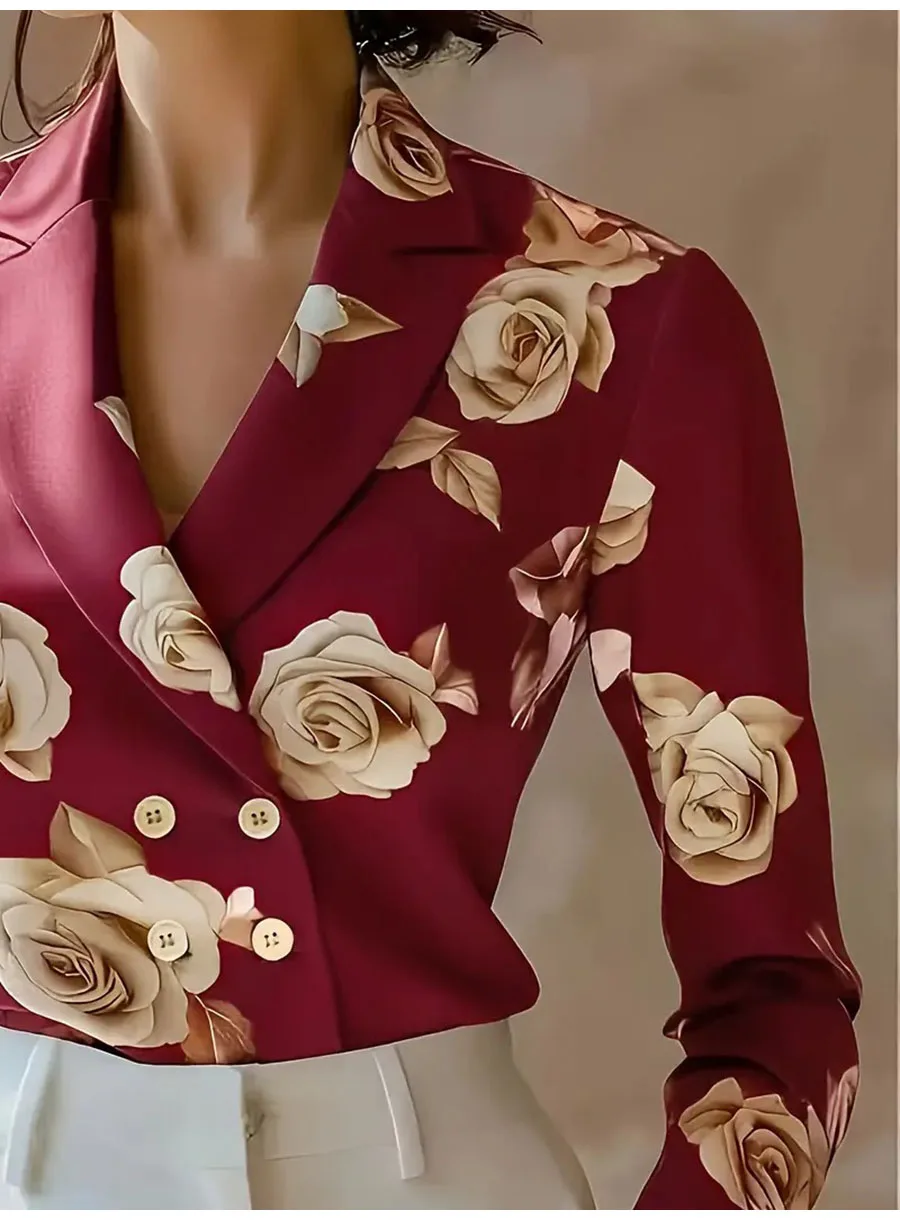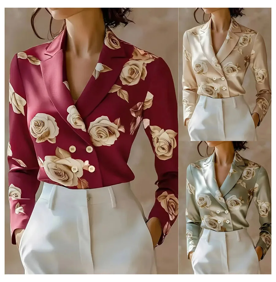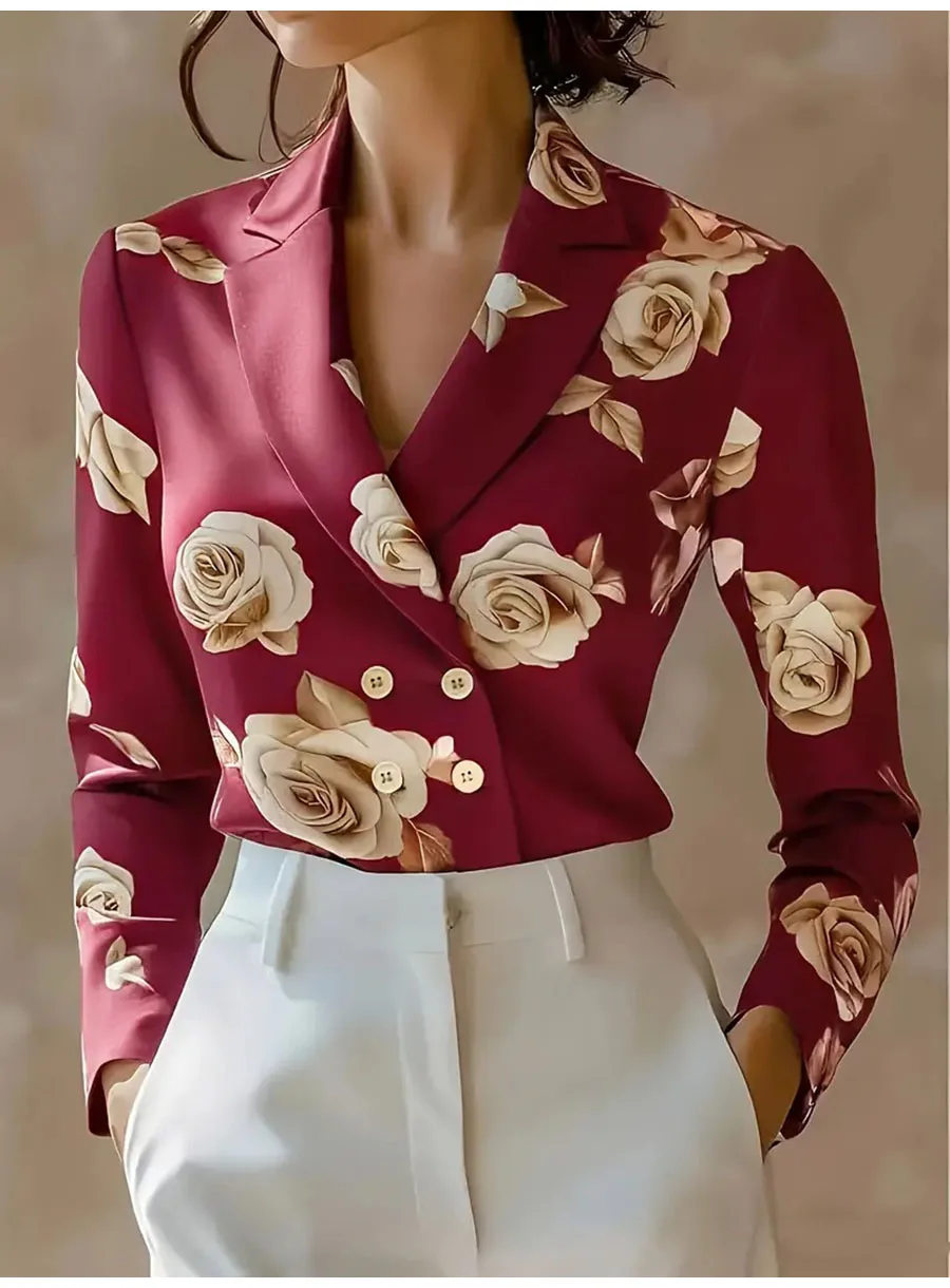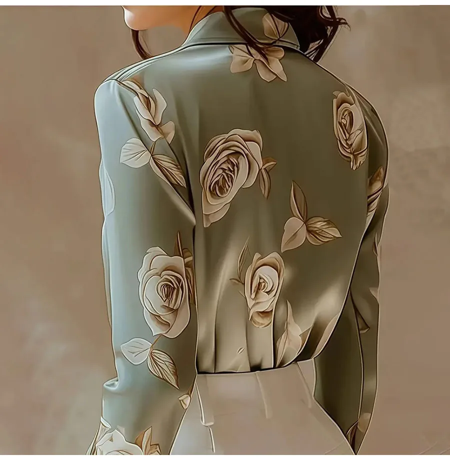 Fashion Flower Print Shirts For Women 2025 Autumn Winter Long Sleeve Turn-down Collar Loose Blouses Tops Elegant