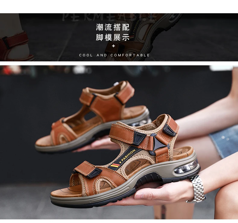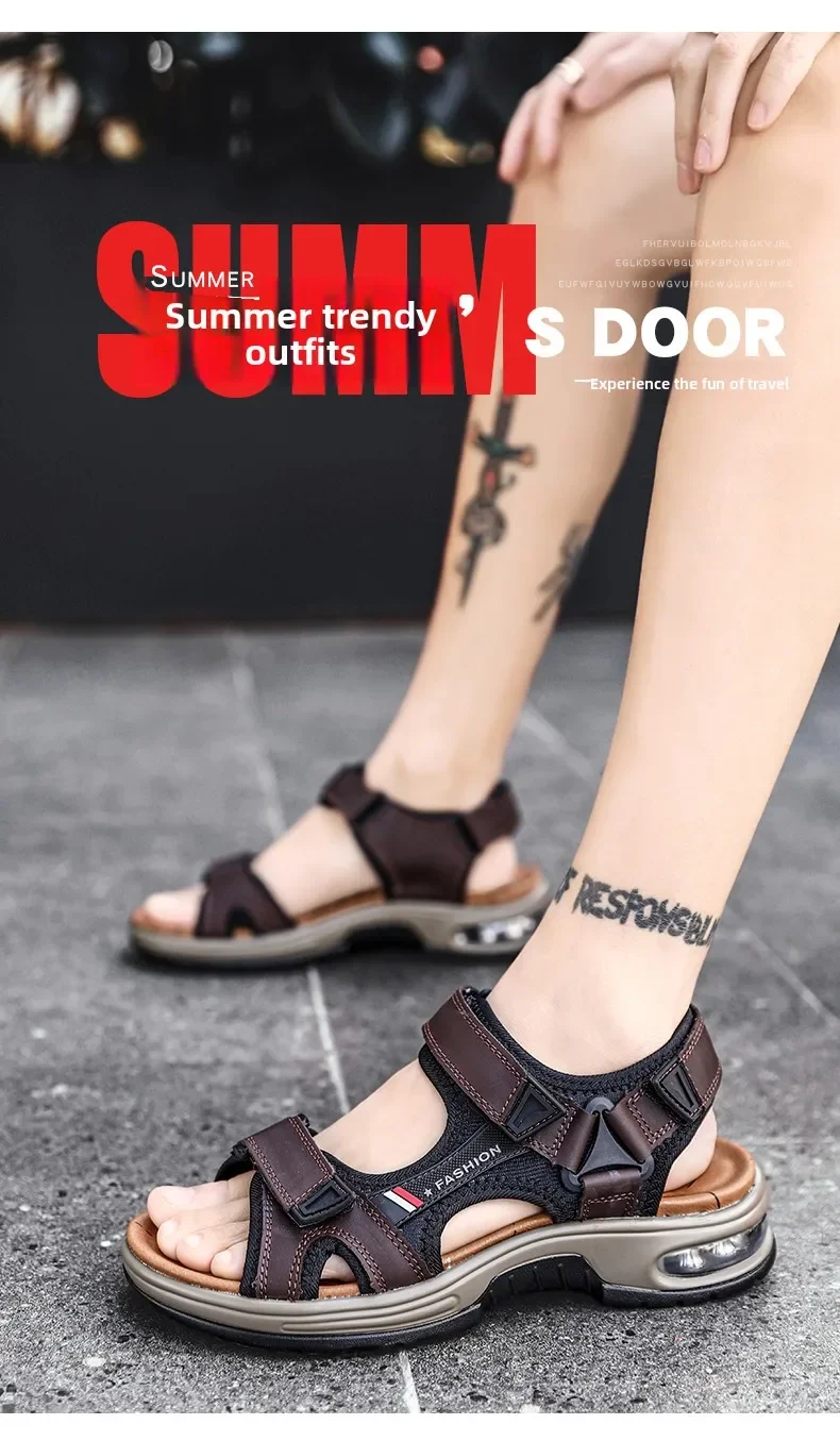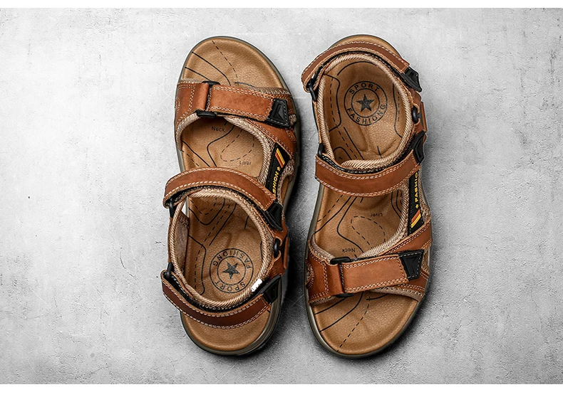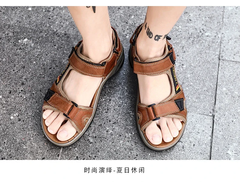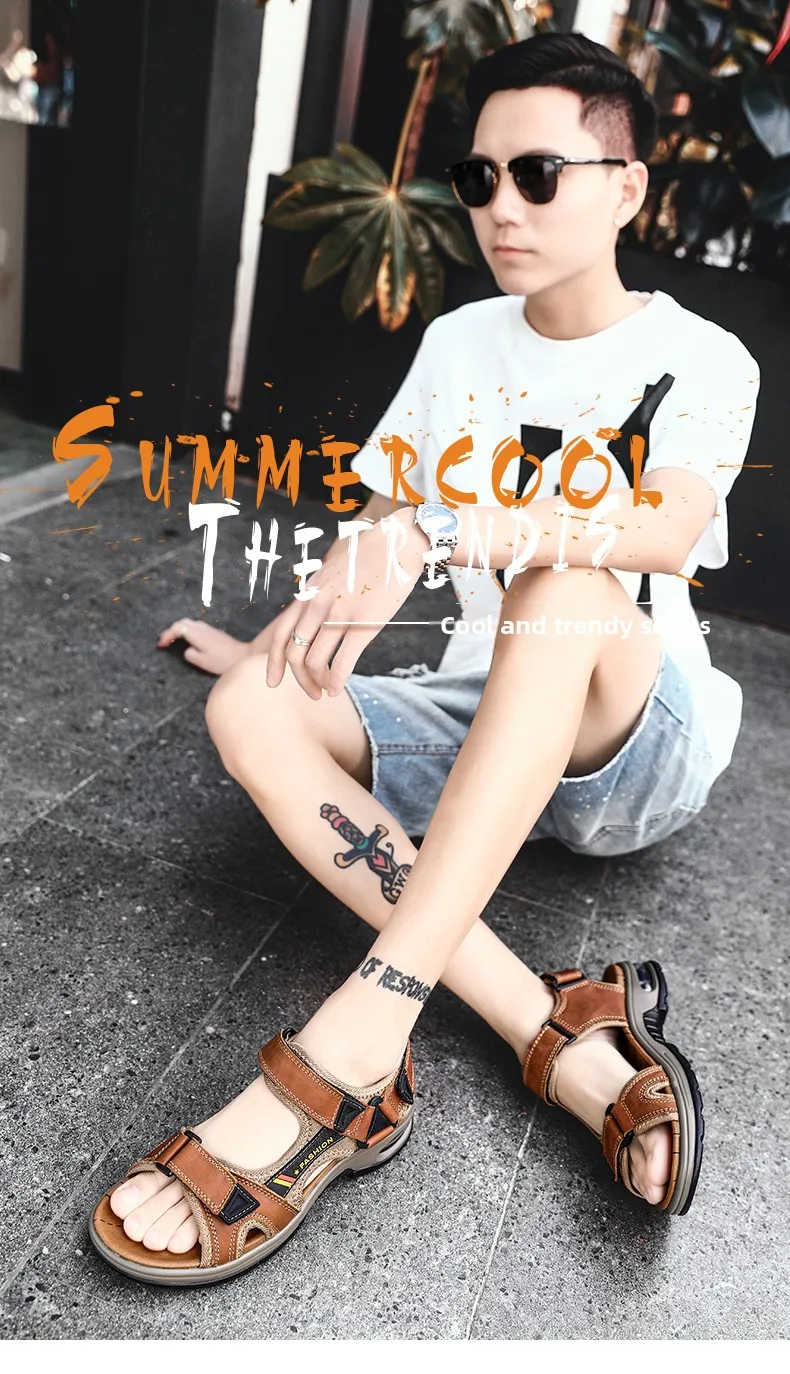Fashion Men's Sandals Summer Soft Beach Flip Flop Comfortable Genuine Leather Sandals Outdoor Men Roman Sandals Size 46