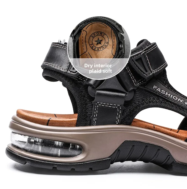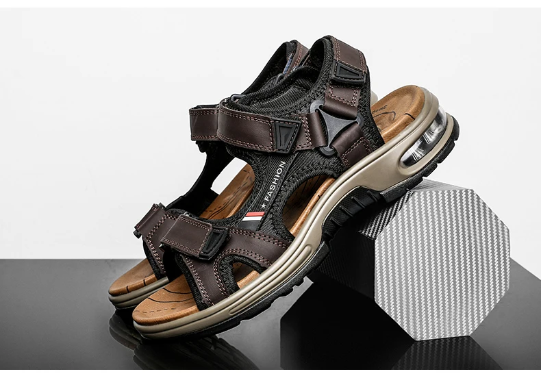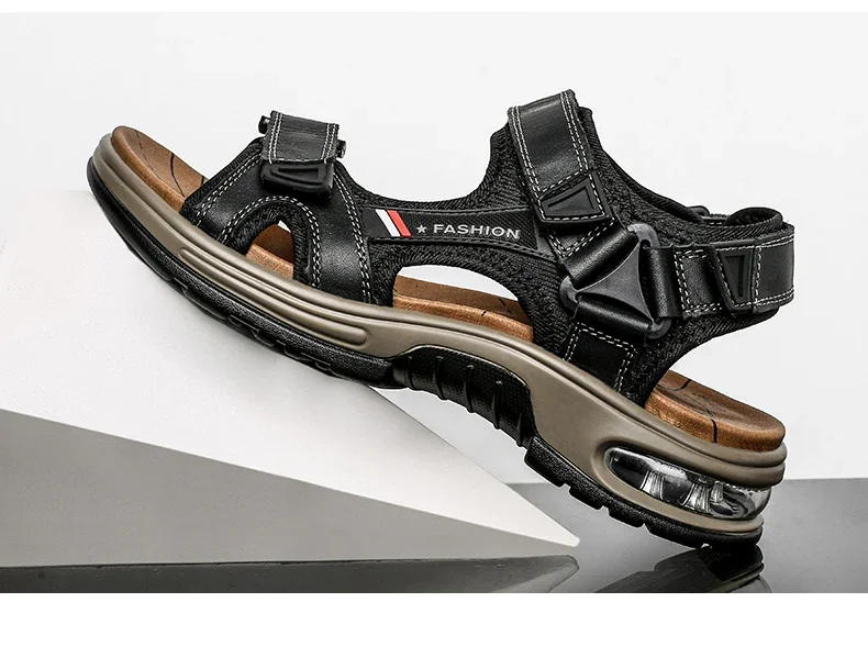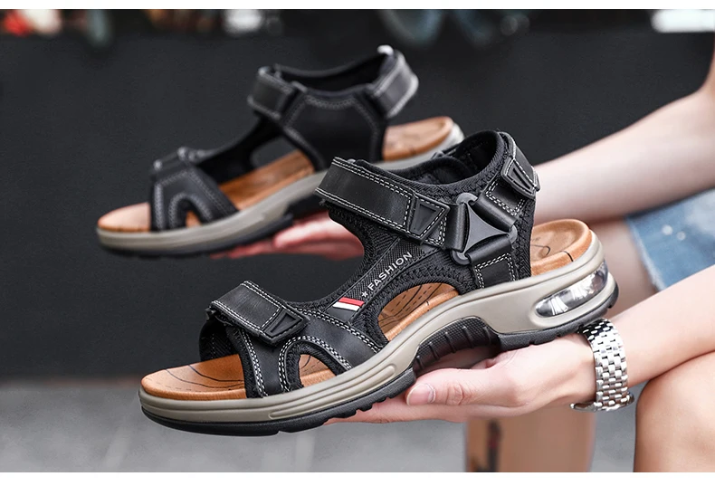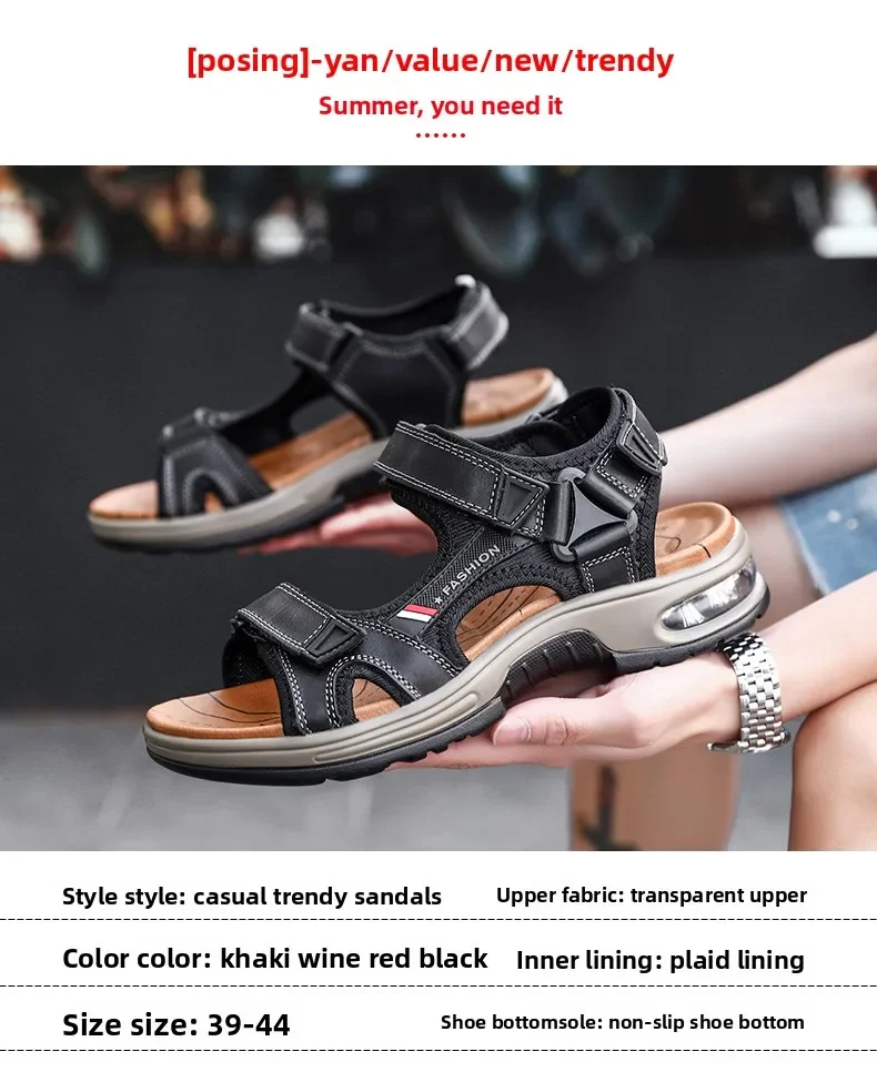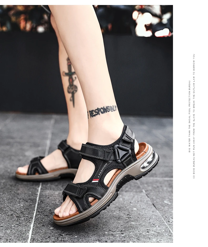Fashion Men's Sandals Summer Soft Beach Flip Flop Comfortable Genuine Leather Sandals Outdoor Men Roman Sandals Size 46