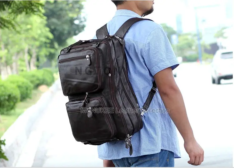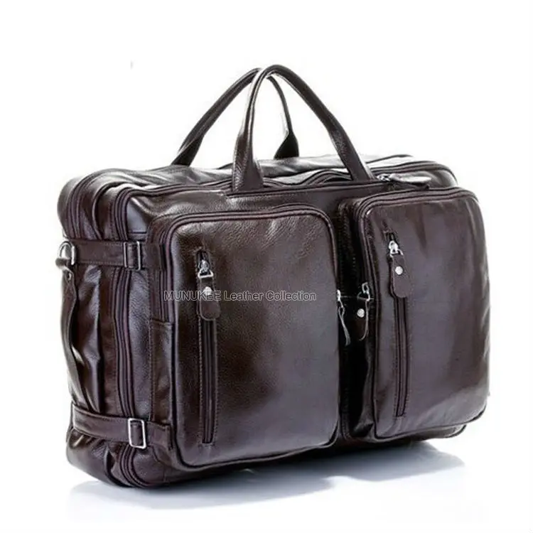 Fashion Multi-Function Full Grain Genuine Leather Travel Bag Men's Leather Luggage Travel Bag Duffle Bag Large Tote Weekend Bag