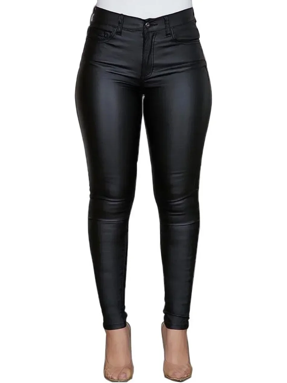 Fashion New Women PU Leather Pants Black Sexy Stretch Bodycon Trousers Women High Waist Solid Color Long Casual Pencil Pants