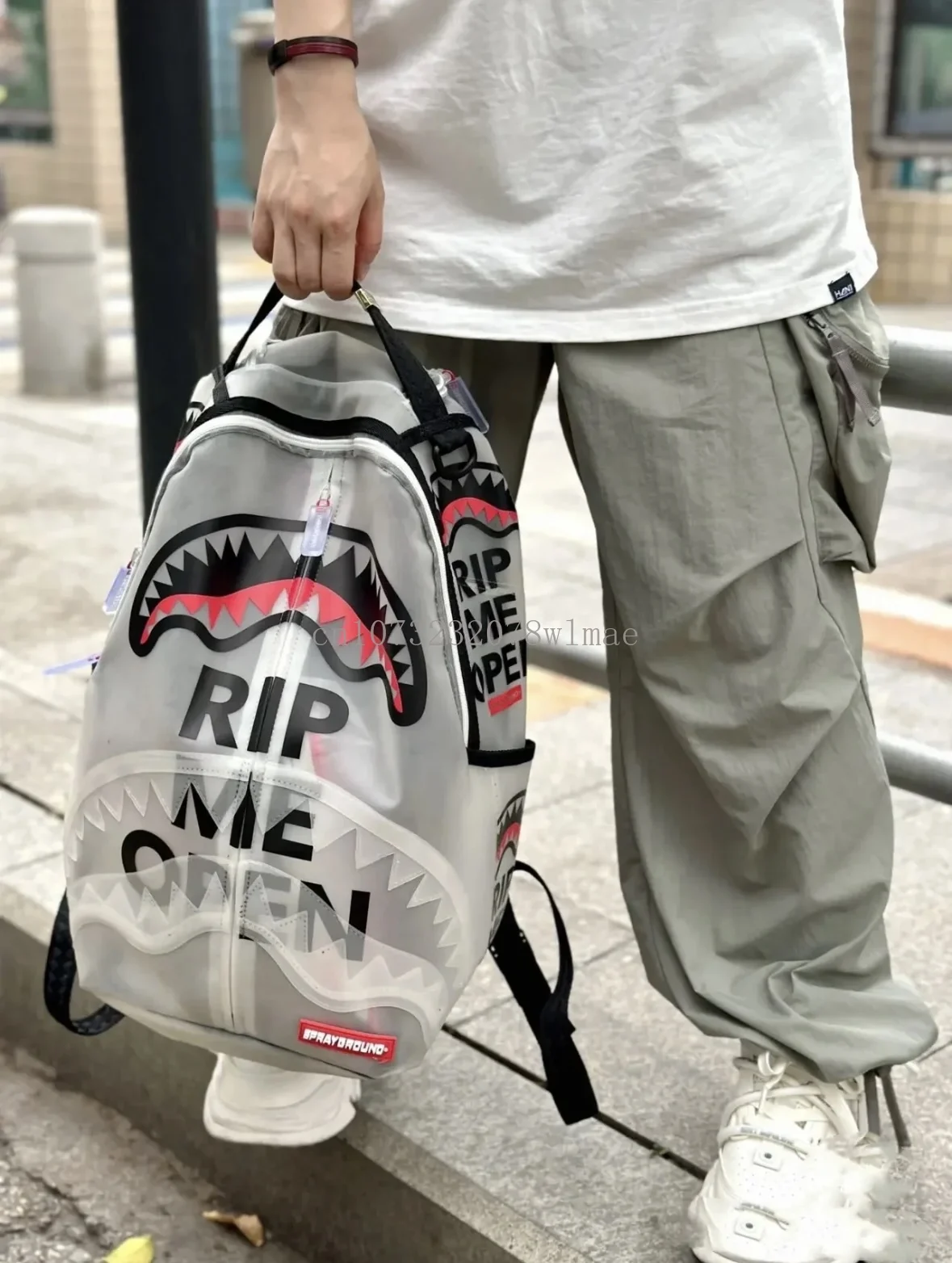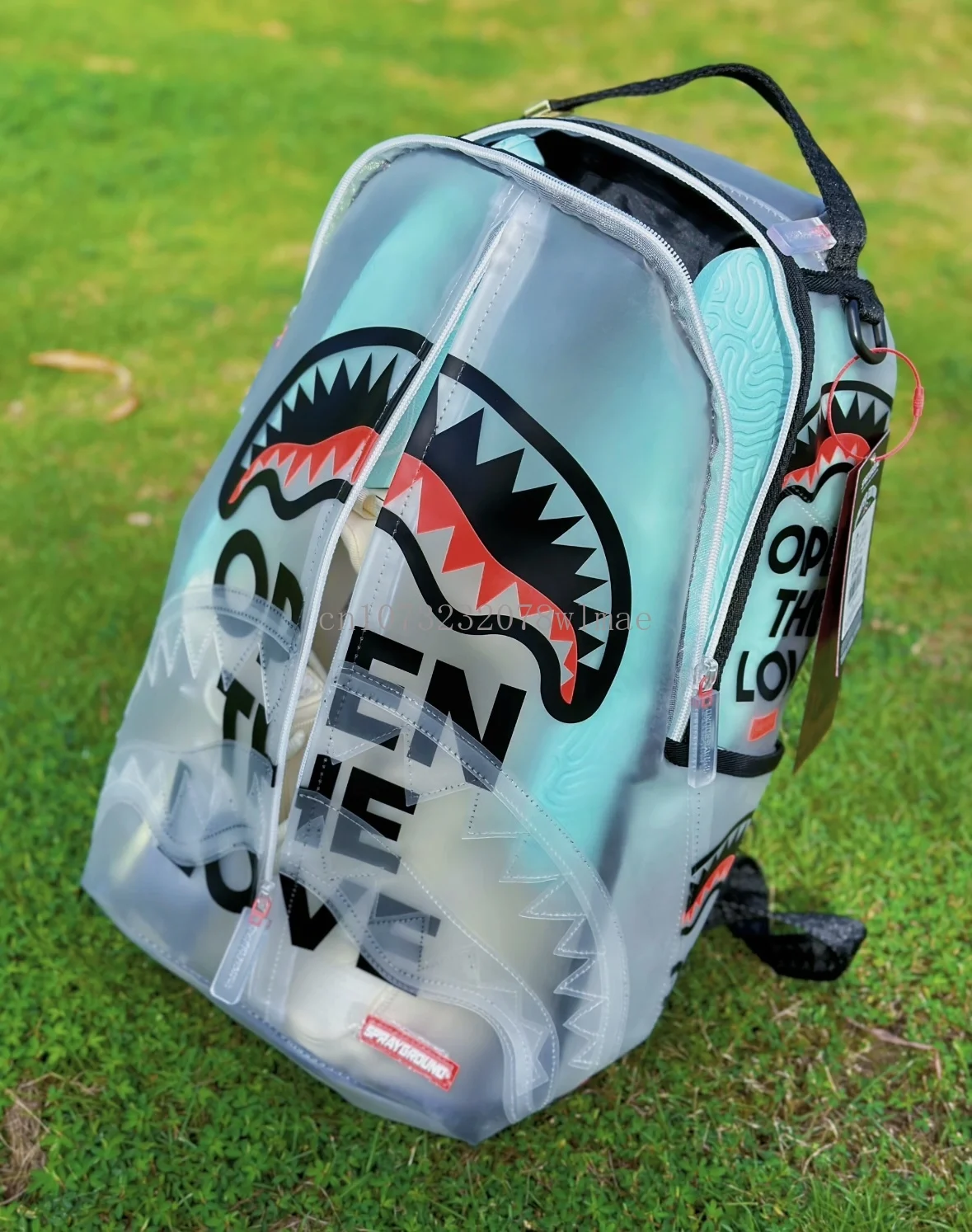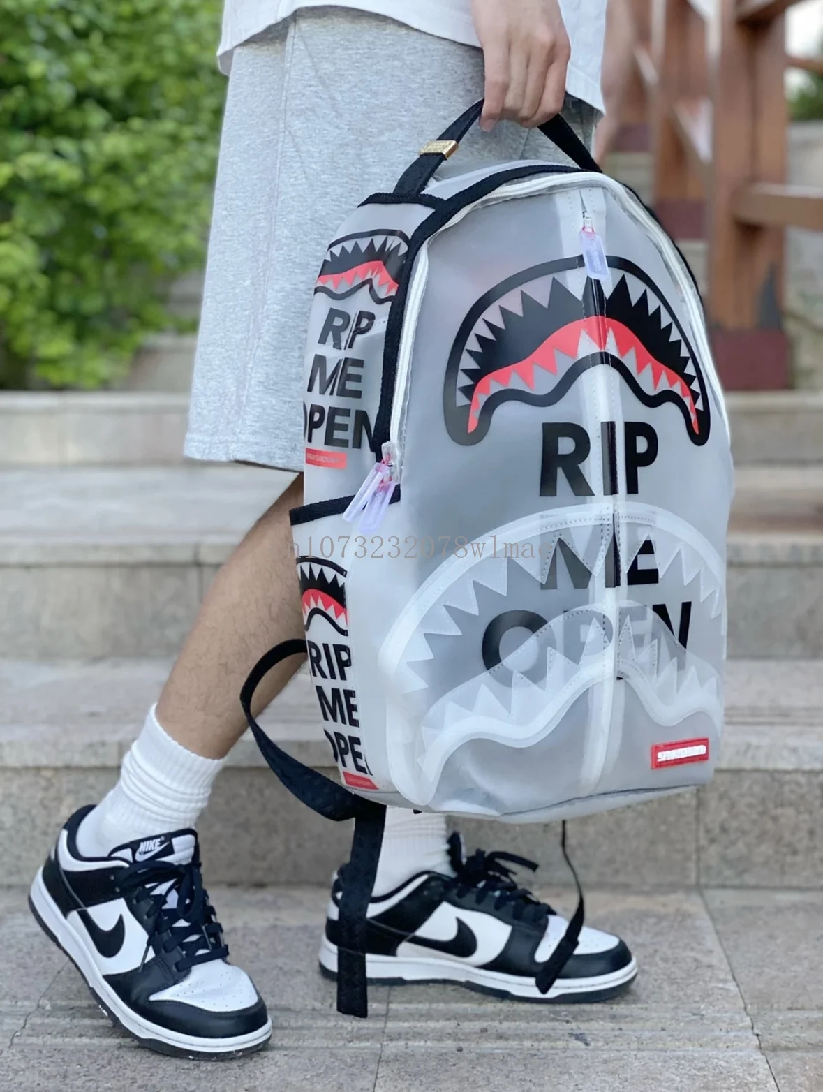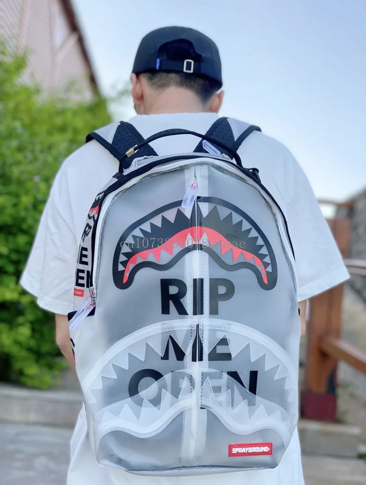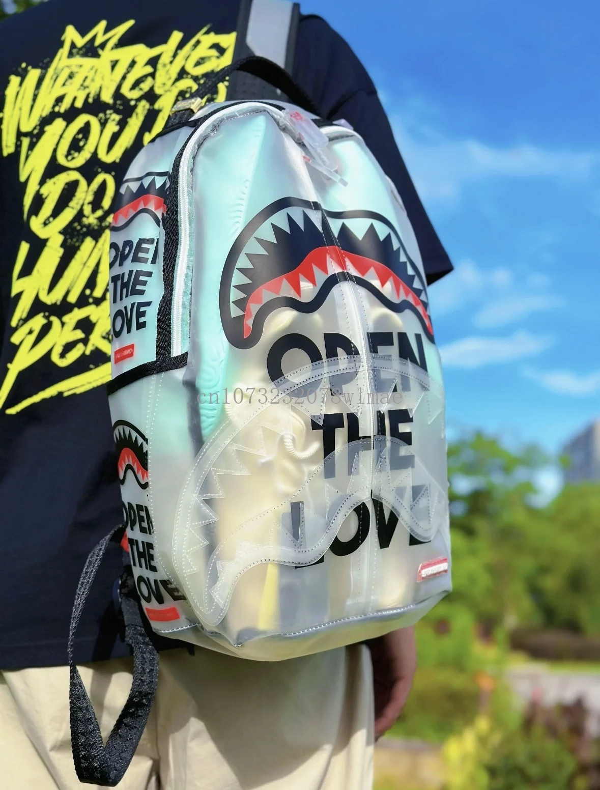 Fashion Shark Letter Transparent Backpack Men Sport Waterproof PVC Clear Plastic Schoolbag Casual Street Large Capacity Rucksack