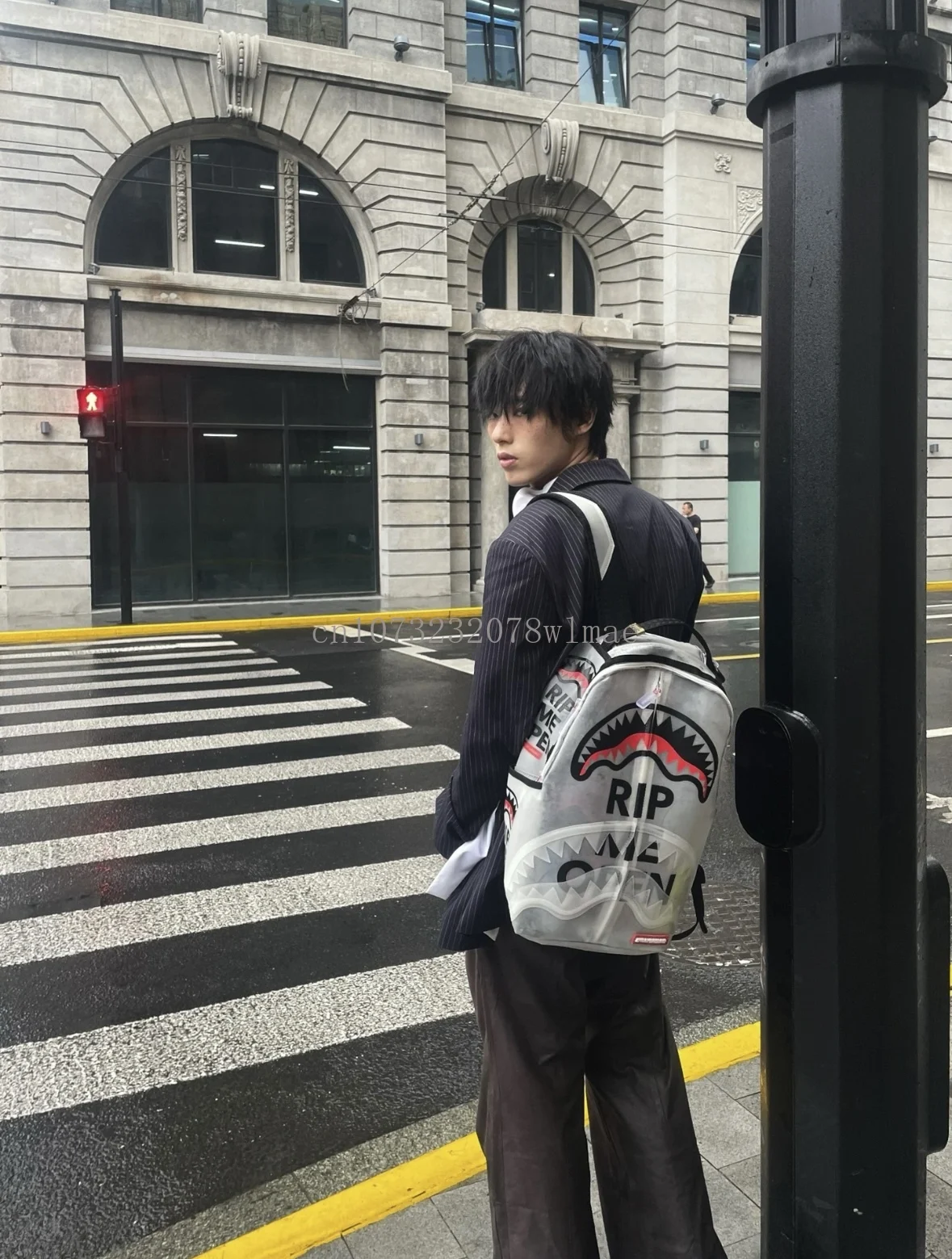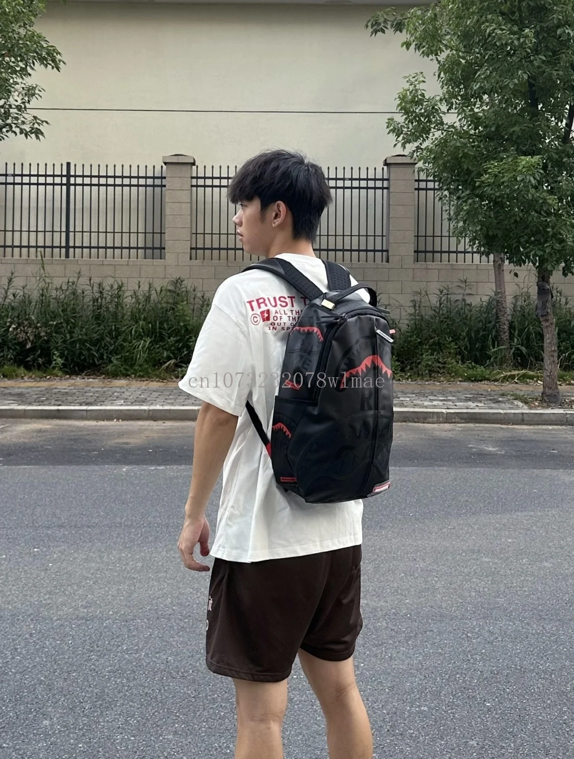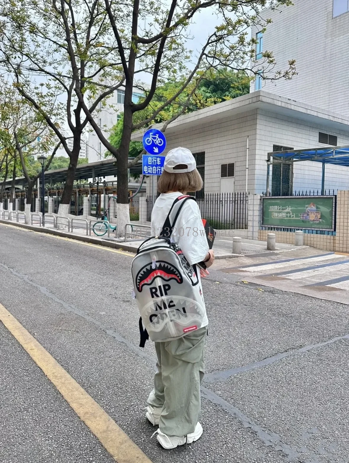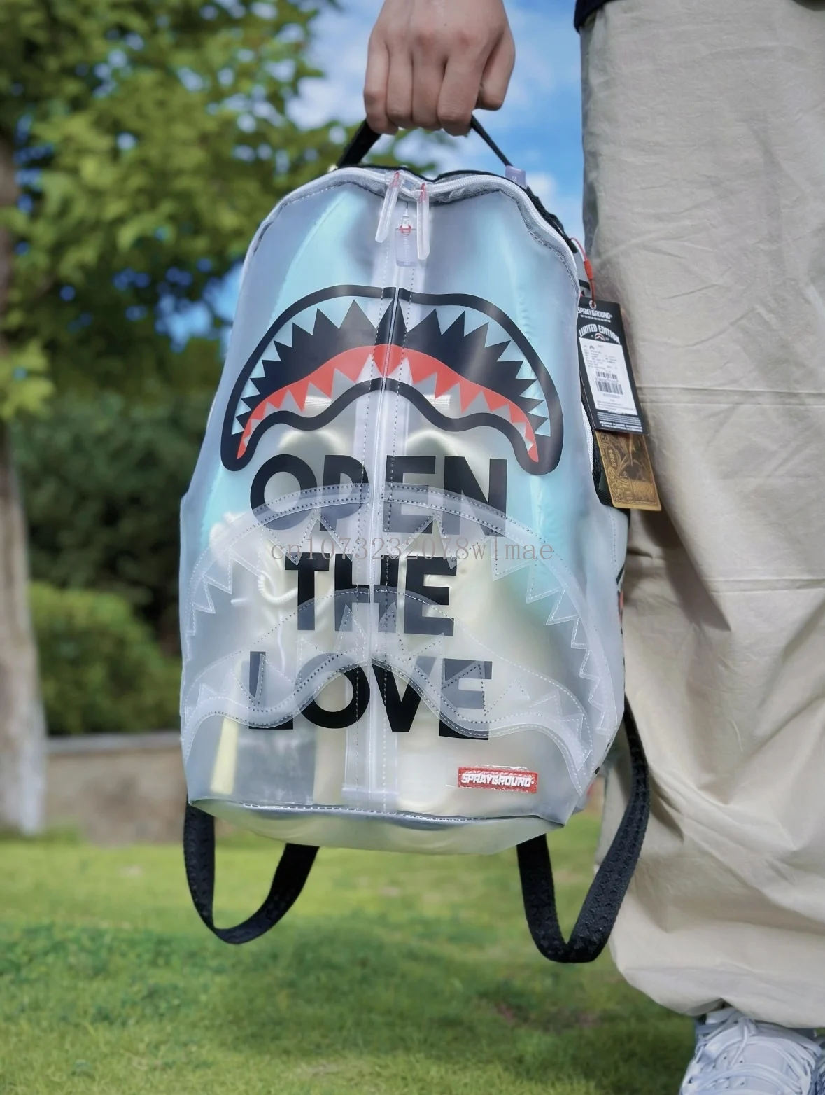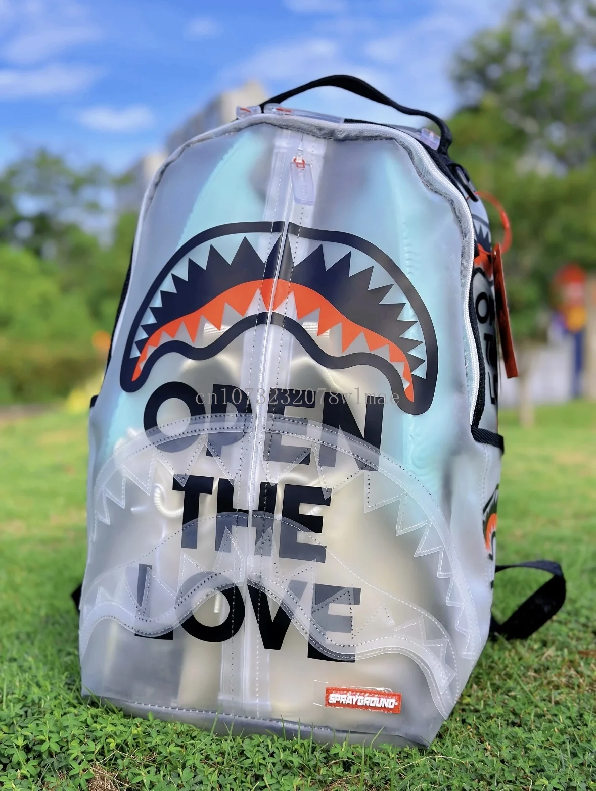 Fashion Shark Letter Transparent Backpack Men Sport Waterproof PVC Clear Plastic Schoolbag Casual Street Large Capacity Rucksack