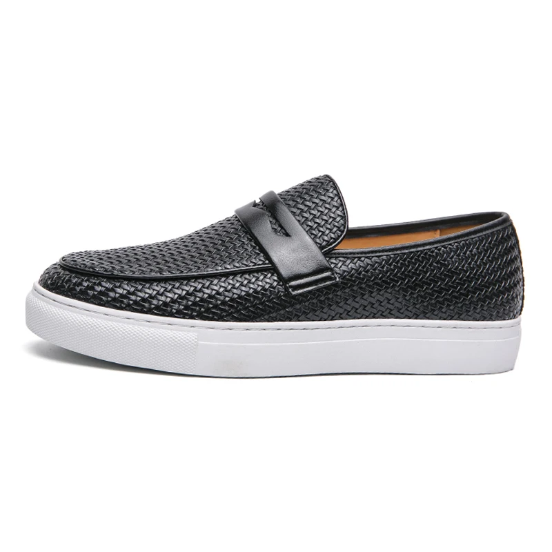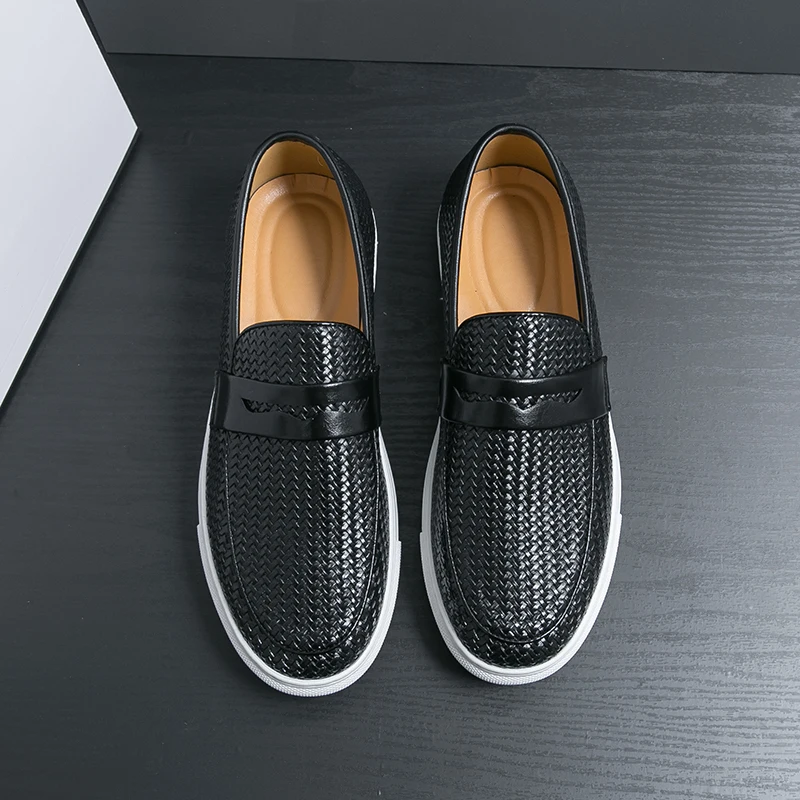 Fashion Slip On Loafers Men Shoes Board Soft Casual Leather Shoes Men Sneakers Party Weave Pattern Shoes For Man Flat Free
