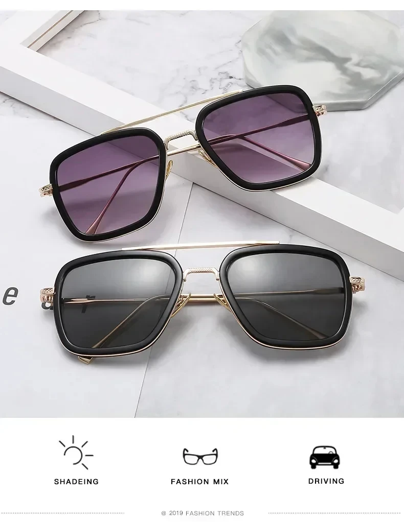 Fashion Steampunk Men Sunglasses Tony Stark Iron Man Sun Glasses Vintage Metal Eyewear Steam Punk Sunglass UV400 Male Gafas