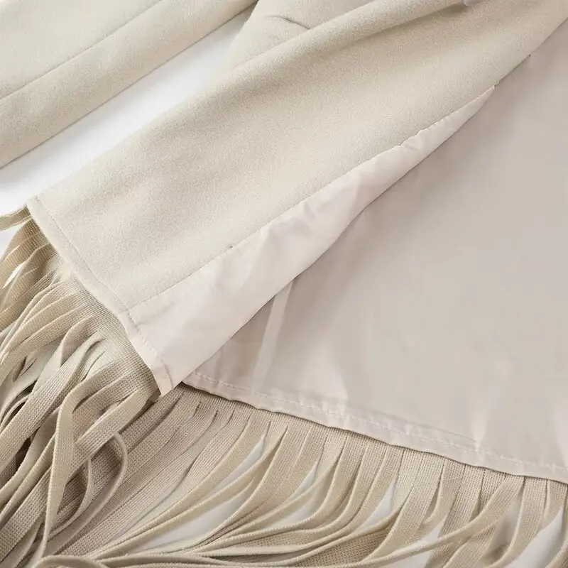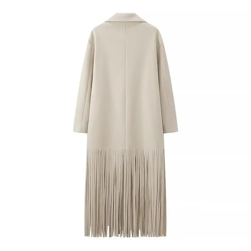 Fashion Tassel Solid Color O-neck Overcoat Woman 2024 Autumn Winter Loose Temperament Long-sleeve Pocket Coat Female Streetwear