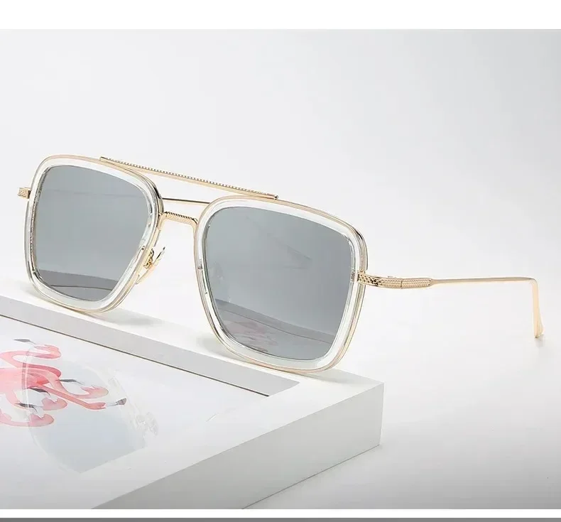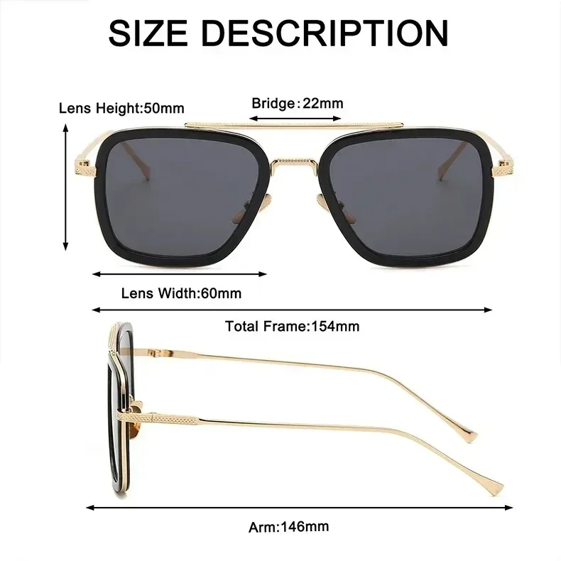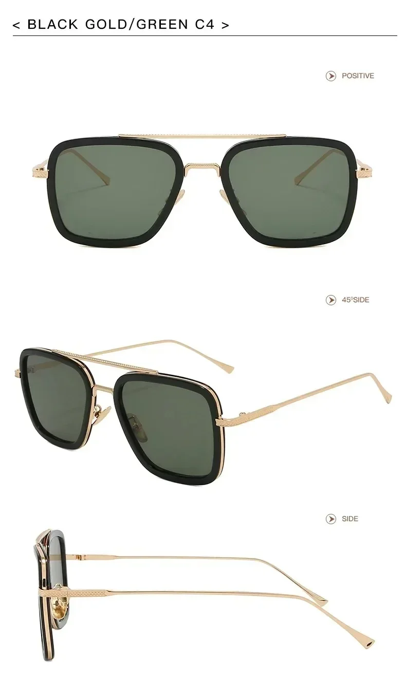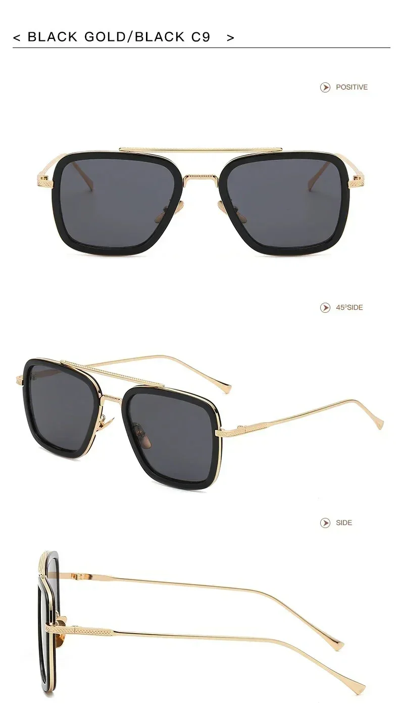Fashion Tony Stark Sunglasses Iron Man Sun Glasses Vintage Square Metal Frames
